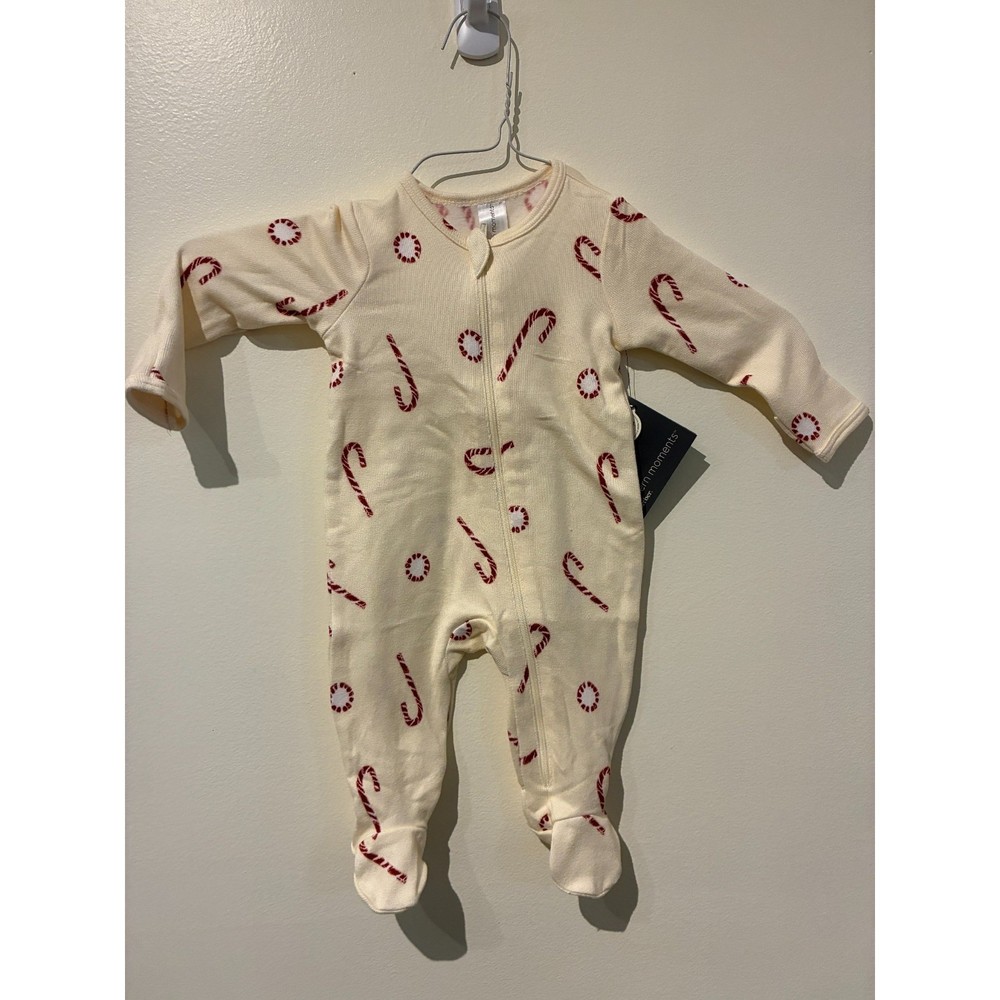 Modern Moments by Gerber baby footed sleeper provides cozy comfort for your little one. This long-sleeve one-piece features a full-length zipper for easy changes and a soft ribbed texture throughout. The cream-colored fabric is decorated with a festive candy cane and peppermint candy print in a classic red and white palette, making it a perfect choice for the holiday season. Brand: Modern Moments by Gerber Type: Footed Sleeper Color: Winter White Pattern: Candy Cane / Peppermint Sleeve Length: Long Sleeve Closure: Zip Up Features: Footed, Ribbed Fabric Style: Holiday, Christmas Theme: Festive Keywords: Christmas pajamas, holiday sleeper, candy cane print, baby footies, winter white, Gerber Modern Moments, newborn pajamas, festive baby clothes, ribbed sleeper, zip up footie, peppermint print, holiday outfit, neutral holiday, cozy sleepwear