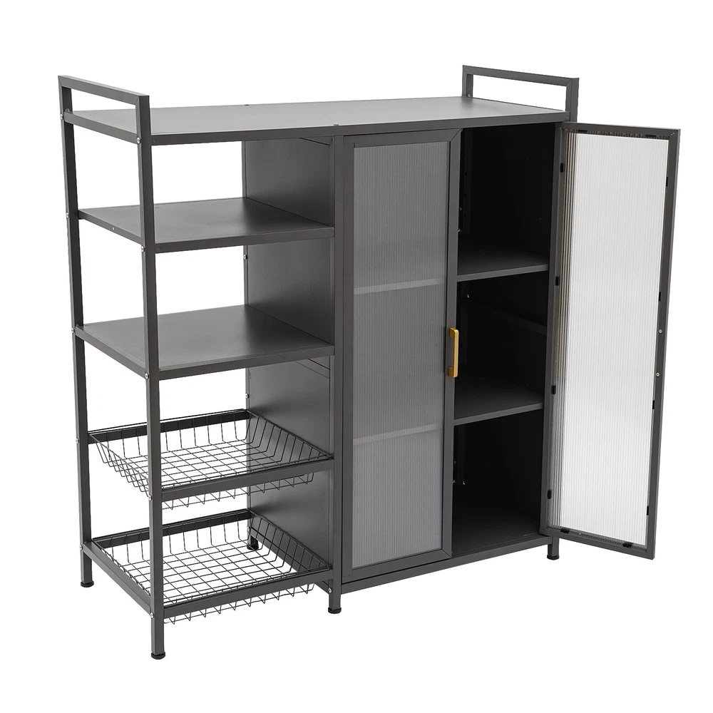 Kitchen Pantry Storage Cabinet with Microwave Storage Space and Shelves