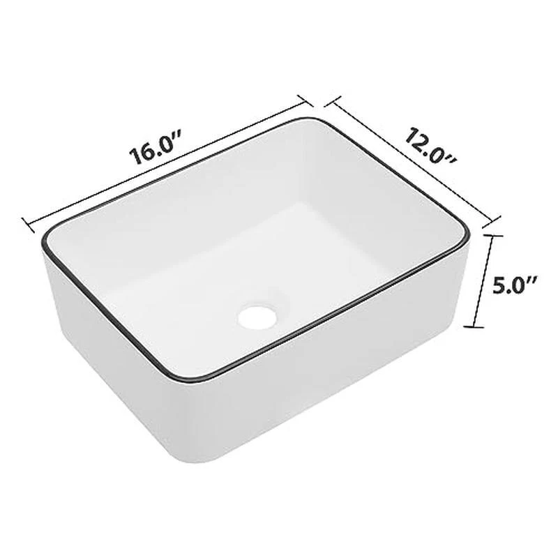 You may also like Durable Epoxy Acrylic Floor Paint Concrete Garage Basement High Traffic Surface 36.58 USD Free shipping AC Furnace Air Filter 16x25x4 MPR 1000 MERV 11 Allergen Defense 4-Pack New 80.2 USD Free shipping Stackable Bariatric Medical Chair Antimicrobial Vinyl 1000 Lb Capacity Reception 246.33 USD Free shipping Mini Broadcast Spreader Seed Fertilizer Salt Ice Melt EdgeGuard Technology New 55.54 USD Free shipping LED Computer Desk W/ Power Outlets 4 Drawers Monitor Stand Keyboard Tray New 123.48 USD Free shipping Extra Large Capacity Galvanized Steel Post Mount Mailbox W/ Outgoing Flag New 67.49 USD Free shipping Multi Use Copy Paper 11x17 In Ledger 20 Lb 2500 Sheet Jam Free Performance White 69.17 USD Free shipping 4.8-Gallon Ash Vacuum 4-Amp Metal Tank Dust Cartridge Filter Suction Hose New 109.92 USD Free shipping L-Shaped Desk W/ Shelves Space Saving Home Office Computer Workstation Espresso 81.51 USD Free shipping Programmable 12-Cup Coffee Maker Drip Auto Brew Easy-View Water Window White New 38.65 USD Free shipping 8 In Stainless Steel Round Chimney Cap Triple Wall Spark Arrestor Insulation New 148.19 USD Free shipping Fire Escape Ladder 2-Story 13 Ft Zinc-Plated Anti-Slip Rungs Durable Easy Use 45.95 USD Free shipping About this item Sleek and contemporary vessel sink, offering modern, elegant and glamour to update lavatory bathroom. This bathroom sink is crafted with high grade ceramic porcelain, specially designed for impact-resistance. This rectangular vessel sink has a smooth, non-porous surface with a baked-on glaze for added durability and a high-gloss finish. Simply wipe the sink surface with a damp cloth to keep it looking beautiful with minimal maintenance. Ceramic sink dimension: 16" x 12" x 5". Above counter installation, easy to install, 1-3/4" drain opening as standard to match universal drain set(DRAIN NOT INCLUDED). Dcolora Commitment: We always put our customers first and are here to help you at any time. If you have any questions or concerns, we will respond within 12 hours. › product details Brand Dcolora Color White-Black Lip Material Ceramic Size 16"x12" Product Dimensions 12"D x 16"W x 5"H You may also like Heavy Duty Rubber Parking Garage Stopper Vehicles Trucks Indoor Outdoor Use 90.14 USD Free shipping Heavy Duty 100 Ft Waterproof Outdoor Extension Cord 12AWG 15Amp Lighted End New 73.14 USD Free shipping MERV 11 Pleated Air Filter 20x20 In Traps Allergens Dust Pet Dander Box 6 New 91.08 USD Free shipping Tall Nightstand 3 Drawer Bedside Table Smooth Glides Sturdy Pine Wood Design New 92.99 USD Free shipping Metal Portable Toolbox 3-Drawer Locking Latch Durable Carry Handle Heavy Duty US 111.01 USD Free shipping Cast Iron Sauce Pot 2.5 Qt Self Basting Lid Boiling Soups Reducing Sauces New 60.37 USD Free shipping Oval Vessel Sink Ceramic Bathroom Wash Basin Easy Install Compact Design White 82.95 USD Free shipping U Shaped Computer Desk W/ LED Lights Power Outlets Monitor Stand Storage Shelves 222.29 USD Free shipping Kids Portable Folding Soccer Goal Mini Net Backyard Play W/ Ground Stakes White 57.46 USD Free shipping Versatile Non-Shedding Area Rug Kitchen Living Room Bedroom Stain Resistant New 86.44 USD Free shipping Vacuum Insulated Stainless Steel Meal Carrier W/ Spoon Portable Leak Proof New 39.73 USD Free shipping High Power 365nm UV Flashlight Long Range Ultraviolet Beam Professional Portable 83.59 USD Free shipping