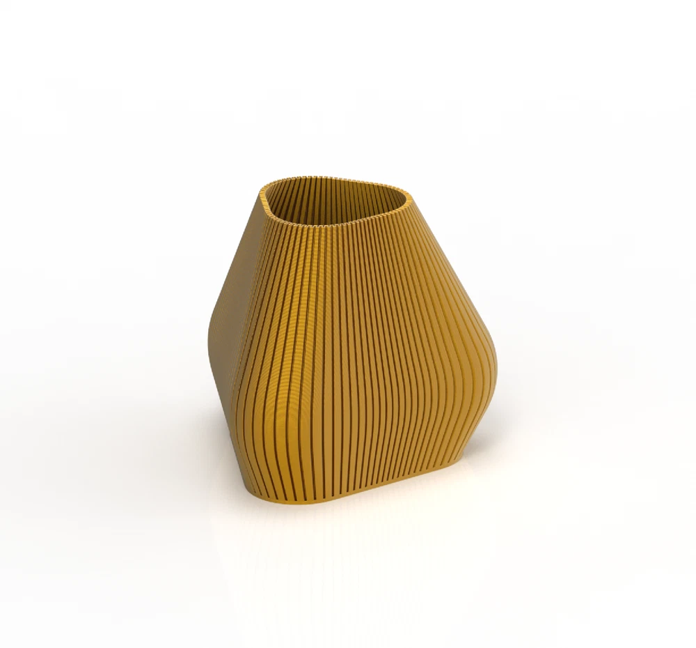 This 3D printed decorative vase features a distinctive pyramid-inspired silhouette , combining geometric structure with soft curvature. The faceted pyramid form gently tapers upward, while the vertical ribbed texture adds depth, movement, and visual interest from every angle. Compact yet striking, this sculptural vase works beautifully as a standalone statement piece or styled with dried or artificial florals. Its structured base provides stability, making it suitable for desks, shelves, and modern interior settings. . Features: Made to Order – Each vase is freshly printed just for you, not mass-produced. Modern Spiral Twist Design – A sculptural form that stands out in any room. Eco-Friendly PLA – Biodegradable material made from renewable resources. Customisable Colours – Choose from a variety of finishes to suit your décor. Multi-Purpose – Perfect for dried flowers, pampas grass, or as a standalone decorative piece. Lightweight & Durable – Easy to move while strong enough for daily use. 📏 Approximate Dimensions: 220 H x W 250 mm 190 H x W 214 mm 160 H x W 180 mm This vase is ideal for coffee tables, shelves, desks, or dining areas. It also makes a thoughtful, one-of-a-kind gift for housewarmings, weddings, or birthdays.. Design by: Kowafatcompany Product ID: 2183 License type: HiveCommunity Hive ID : F16AR2JDK7 Shipping Your vase will be dispatched within 24 - 48 hours of cleared payment Guaranteed next day delivery service via Royal Mail Special Delivery available for an additional fee.