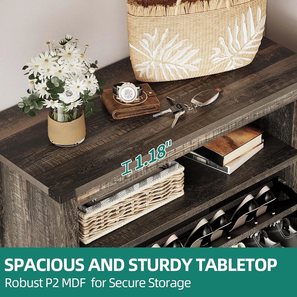 $ 95.8Narrow Wood Shoe Cabinet with 2 Flip Doors for Entryway Storage