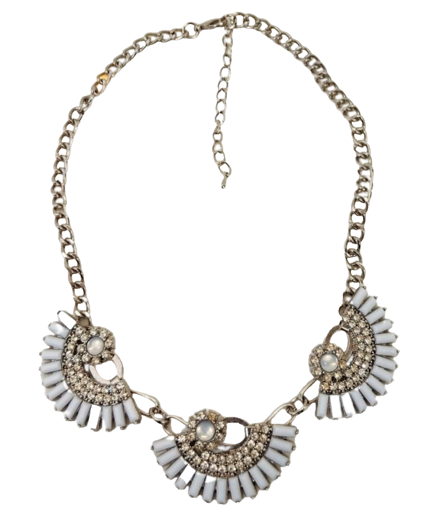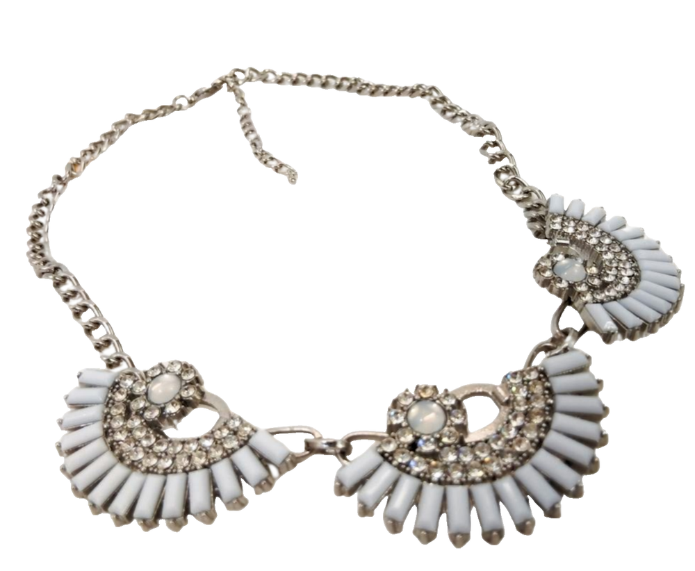 Modern Silver Tone Radiant 17" Crystal Statement Necklace w/ 3" Extender JN1466 Radiate confidence with this stunning silver-tone statement piece. The ultimate accessory for making bold fashion moves. Every piece of jewelry you wear has a story to tell—make yours unforgettable. Treasure Vault’s vintage and statement collections let you channel power, grace, and edge, no matter the occasion. Perfect for the woman who isn’t afraid to shine, our pieces are curated to elevate your style, day or night. Ready to write the next chapter? Bundle & Save: One treasure is never enough. Add a little more to your story and save while building your perfect collection. #SilverStatementJewelry, #BoldNecklaceDesigns, #SilverToneStyle, #NecklaceTrends2024, #DaringJewelryLooks