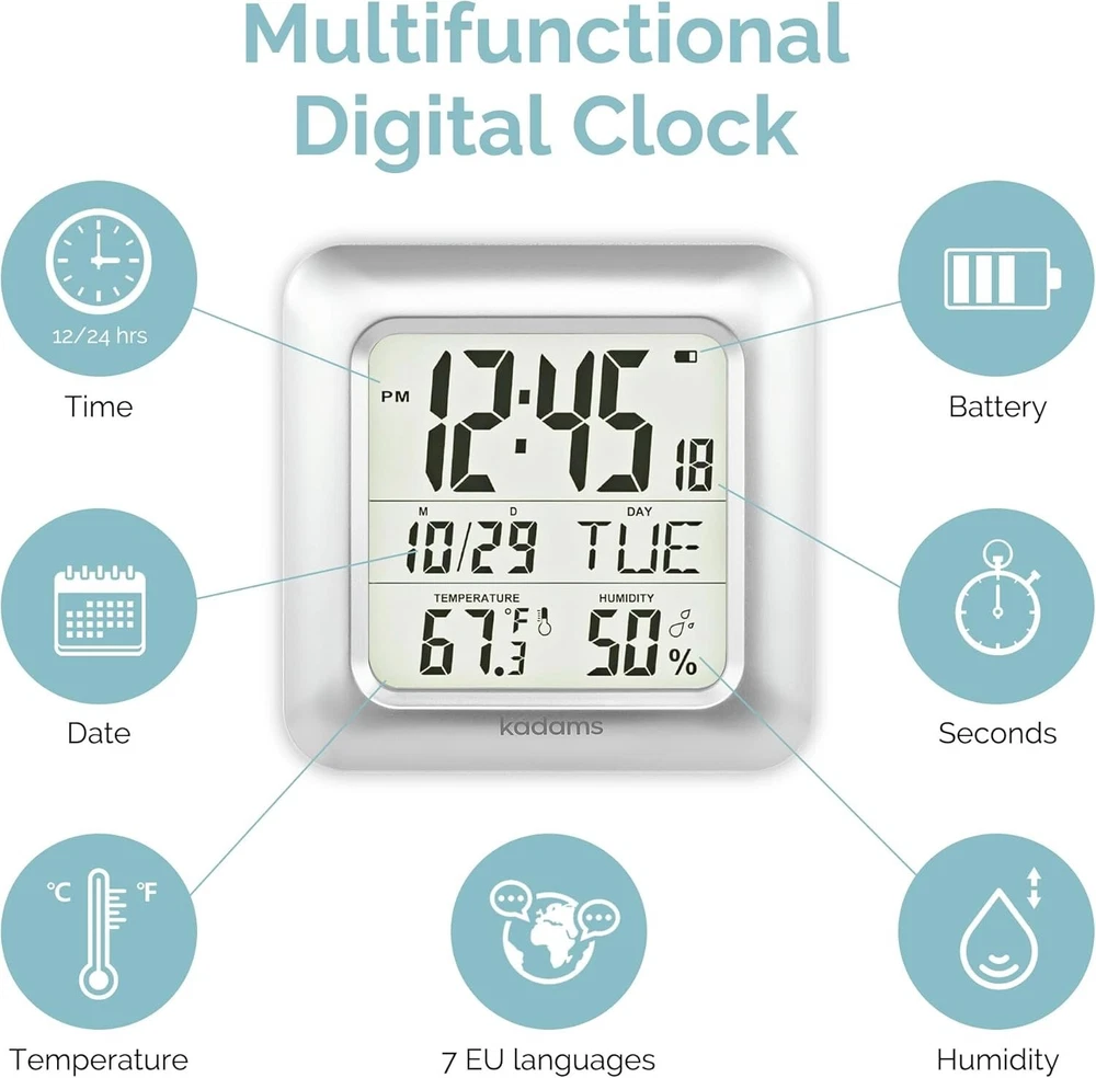 Modern Silver Wall Clock: Waterproof, Humidity Display & Multi-Language Calendar ‹ › ‹ › ‹ › ‹ › ‹ › ‹ › ‹ › ‹ › ‹ › ‹ › ‹ › Modern Silver Wall Clock Elevate your home decor with our stunning Modern Silver Wall Clock —a blend of functionality and elegance that fits seamlessly into any environment. Key Features: Waterproof Design: 24 rated, ensuring durability in humid environments like your bathroom, kitchen, or laundry room. Shatterproof Fiberglass Frame: Lightweight PMMA screen face providing clarity and resilience as a safe alternative to glass. Versatile Installation Options: Choose from four methods—stand, wall mount, suction cup, or suspend with PVC rope. Temperature & Humidity Tracking: Displaying temperature between 0°C to 50°C (32°F to 122°F) and humidity levels from 20% to 99% for your comfort. Multi-Language Calendar: Built-in calendar available in seven languages with flexibility in date formats for easy accessibility. Convenient Battery Operation: Long-lasting AA alkaline battery with a low battery indicator for hassle-free management. Why Choose Our Modern Silver Wall Clock? This clock is not merely a timepiece; it’s a statement. With its exquisite design and practical functionalities, it provides you with temperature and humidity tracking, ensuring your environment is just right. Whether you're engaged in daily routines or enjoying a pampering spa day, this wall clock adapts seamlessly to your lifestyle, enhancing every moment with elegance. Make a flawless addition to your home—embrace style and functionality today with our Modern Silver Wall Clock ! Shipping Free & Fast Shipping - We offer free shipping to most of the USA with a normal delivery time of 3-7 days. However, due to the current situation, additional delivery time (up to 3 weeks) may be required for some items. Alternative Carriers - We may use alternative carriers (e.g. USPS, FedEx, UPS, etc.) to ensure your package arrives safely and on time. Due to the use of multiple carriers, we are unable to provide a tracking number automatically. Handling Time - Orders are processed and shipped within 1-2 business days of receiving cleared payment. Shipping Restrictions - Shipping to Alaska, Hawaii, Puerto Rico, Guam, and other US territories may incur shipping charges or delivery restrictions. Please contact us before ordering, or your order can be refunded/cancelled. State Restrictions - There may be restrictions based on your state of purchase. For example, certain items may not be shipped to California due to state regulations. Contact for Tracking Updates - If you require tracking updates or have any concerns about the delivery of your order, please feel free to contact us, and we will be happy to assist you. Return 30-Day Hassle-Free Returns - We want you to be completely satisfied with your purchase. If you are not, you can return the item within 30 days of receiving it for a full refund or exchange. Easy Return Process - To start a return, simply contact us and we will provide you with a prepaid return shipping label and detailed instructions. Restocking Fee - There are no restocking fees for returns. However, the buyer is responsible for return shipping costs if the return is not due to a seller's error. Refund Processing Time - Refunds will be processed within 5 business days of receiving the returned item in its condition. Payment We accept all major credit cards, PayPal, and Apple Pay for your convenience. Your payment information is secure and encrypted to ensure a safe and seamless transaction. Please complete your payment within 3 days of purchase to avoid any delays in shipping. Feedback Your feedback is extremely important to us. We strive to provide the best products and customer service possible. If you are satisfied with your purchase, please take a moment to leave us a positive review. If you have any concerns or issues with your order, please contact us before leaving negative feedback. We are committed to resolving any problems and ensuring your satisfaction. Contact Us If you have any questions or concerns, please feel free to out to our customer support team. You can contact us through the eBay messaging system. We are available Monday to Friday, 9:00 am to 5:00 pm EST, and we will do our best to respond to your inquiry within 24 hours. Buy it now and enjoy a pleasant shopping experience! Unit Quantity: 0.39 kg Features: Waterproof,Waterproof Design,Multi-Language Calendar,Convenient Battery Operation Theme: Calendar Material: Fiberglass,Plastic,Shatterproof Fiberglass,PMMA Screen Face,Silver ABS Room: Bathroom,Dining Room,Living Room Department: Kids,Adults Type: Wall Clock Style: Modern Power Source: Battery Powered Color: Silver Movement: Digital Display Type: Digital Frame Material: Plastic Shape: Square Protection Plan: No Coverage Item Weight: 0.39 kg