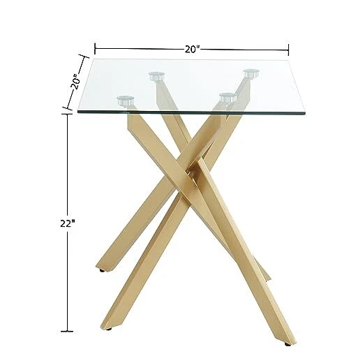 Modern Style Square Side Table with Tempered Glass Top and 20"Dx20"Wx22"H Gold