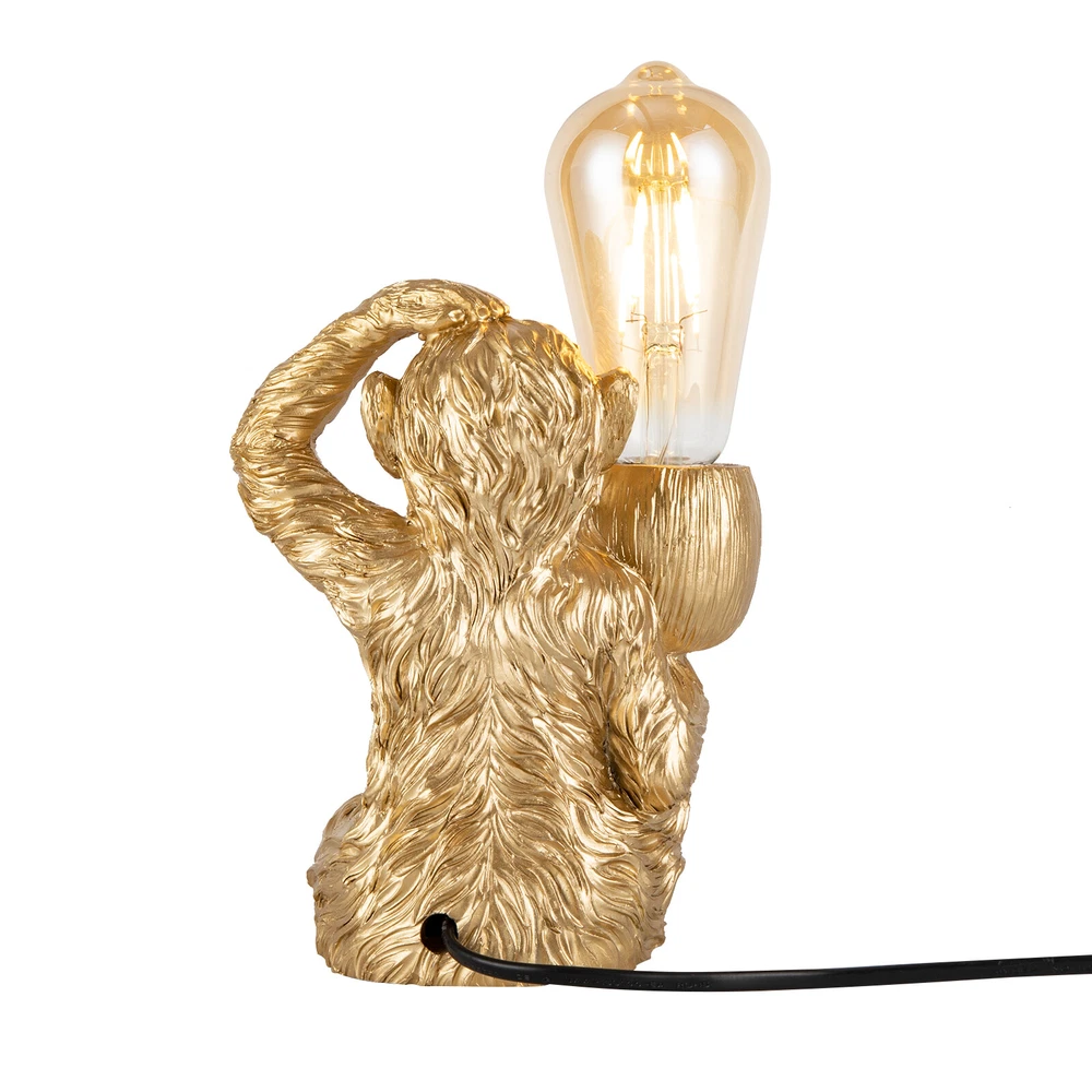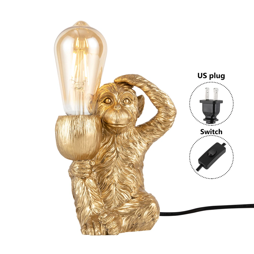 Specification Color: Gold Style: Modern Material: Resin Process: Painting, Carving Light Source:1* E26 Bulb (Not Included) Max. Bulb Power: 60W Efficiency: E Assembly Required: No Mounting Type: Tabletop Lamp Type: Table Lamp Power Source: Corded Electric Plug: US Standard Number of Items: 1 Voltage: 110V Applicable Area: 5-10 m²/53.82-107 ft² Power Cord Length: 1.8 m/5.9 ft Product Size (H*W): 11*18 cm/4.33*7.08 inch Modern Table Light Gold Monkey Desk Lamp Unique Resin Monkey Lighting Fixture Description The playful sitting monkey will be a bright addition to your nest and will enliven the space. Cra fted with attention to detail, it is not only functional but also serves as a piece of art. This unique and pleasing lamp will add radiance and color to your space, it's a great choice for those seeking a touch of royal charm in their bedroom. Key Features Fine Craftsmanship: This product adopts painting and carving techniques, and the monkey's shape is both unique and interesting, with a surprisingly realistic appearance, creating an eye-catching effect. Ideal Decoration : It is a decorative lighting accessory that adds a playful and whimsical touch to any desk or tabletop, serving as both a functional light source and a charming decor piece. Strong and Soft Light: This product can be self-configured with a high power (Max.60W) E26 bulb to emanate a beautiful and luminous radiance and fully light up your space with its open design. Build to Last : It is made of resin with the painting process, making it sturdy, anti-rust , durable, and still beautiful and practical after long-term use. Effortless Cleaning: It has a simple structure and a smooth surface. When dust accumulates, you only need to use a towel to clean it. Space-saving: The compact size ( 4.33 * 7.08 in) makes it ideal for placing on any surfac e without taking up too much space. Easy to Use: This product comes with a switch design that can be adjusted with just one press. The simple operation makes it easy for the elderly and children to grasp. Ideal Gift : The stylishness and beauty of the lamp make it an ideal choice as a housewarming or birthday gift for your family, lovers, friends, and kids. Protective Packaging : To prevent the product from being damaged during transportation, we packed it with foam to protect your products to the maximum extent possible. Customer Service: We aim to provide quality products and services. If you have any problems, please feel free to contact us. We will reply and solve the problem for you as soon as possible. Details E26 Lamp Head : It is compatible with various bulb types, such as LED, incandescent, and CFL within 60W, presenting different lighting effects. Steady Gesture: The monkey sitting with its feet touching the floor provides extra support, so you don’t have to worry that it may fall and break. Extended Power Cord: The 5. 9 ft length of the power cord is convenient to use, allowing you to power it easily. Application With a lighting area of about 53.82 - 107ft² , it is suitable for lighting and decoration in bedrooms, dining rooms, study rooms, living rooms, balconies, clothing stores, tea houses, cafes, hotels, etc., or on the bedside, end tables, working tables, and more. Specification Color: Gold Style: Modern Material: Resin Process: Painting, Carving Light Source:1* E26 Bulb (Not Included) Max. Bulb Power: 60W Efficiency: E Assembly Required: No Mounting Type: Tabletop Lamp Type: Table Lamp Power Source: Corded Electric Plug: US Standard Number of Items: 1 Voltage: 110V Applicable Area: 5-10 m²/ 53.82 - 107 ft² Power Cord Length: 1. 8 m/5. 9 ft Product Size (H*W): 11 * 18 cm/ 4.33 * 7.08 inch Package Included 1* Monkey Desk Lamp Notes Please be aware that the bulb is not included in the package, you need to prepare an E27 bulb yourself. We do not recommend using halogen bulbs. Please note that the illumination range of the monkey table lamp depends on the wattage of the light source you configure yourself. Please allow the slight color difference caused by the shooting light and the 1-3cm error due to manual measurement. Please make sure you do not mind before you order. Payment Delivery details Terms of sales About us Contact us Payment We accept ebay payment 。 Fees such as import duties, taxes are not included in the item price or shipping costs. These charges are the buyer's responsibility. Delivery details Shipping: 2-9 working days to: USA Terms of sales We maintain high standards of excellence and strive for hundred percent customer satisfaction. Feedback is very important to us. We hope that you contact us immediately before you give neutral or negative feedback, so that we can address your concerns. It is impossible to address issues if we do not know about them! About us Your satis faction is our ultimate goal. We work hard to earn your trust and future business. Our certified technicians have tested each item before shipping. The unit comes with 1 year limited warranty on all manufacturing defects. a) If you receive a defective item, you may return it or ask for a discount. Please contact us within 14 days after you receive the package. b) What you returned must be intact and in its original packaging as re? u. Customer is responsible for shipping costs of the returned item. c) We will cover the cost of shipping back t with the shipping rate indicated in the registration page. We will send you a new unit or refund the full payment you paid. Thank you. Contact us Business Hour Business Hour: Monday To Friday: 8:30 AM to 5:00 PM (Beijing China time) Due to time zones, our reply to your questions may not be immediately. But within above working time, we will reply your email within 24 hours. If it's non-workdays, please kindly be patient and wait till Monday. Please contact us with ebay message. Please feel free to contact us if you have any questions. Monday To Friday: 8:30 AM to 5:00 PM (Beijing China time) Due to time zones, our reply to your questions may 