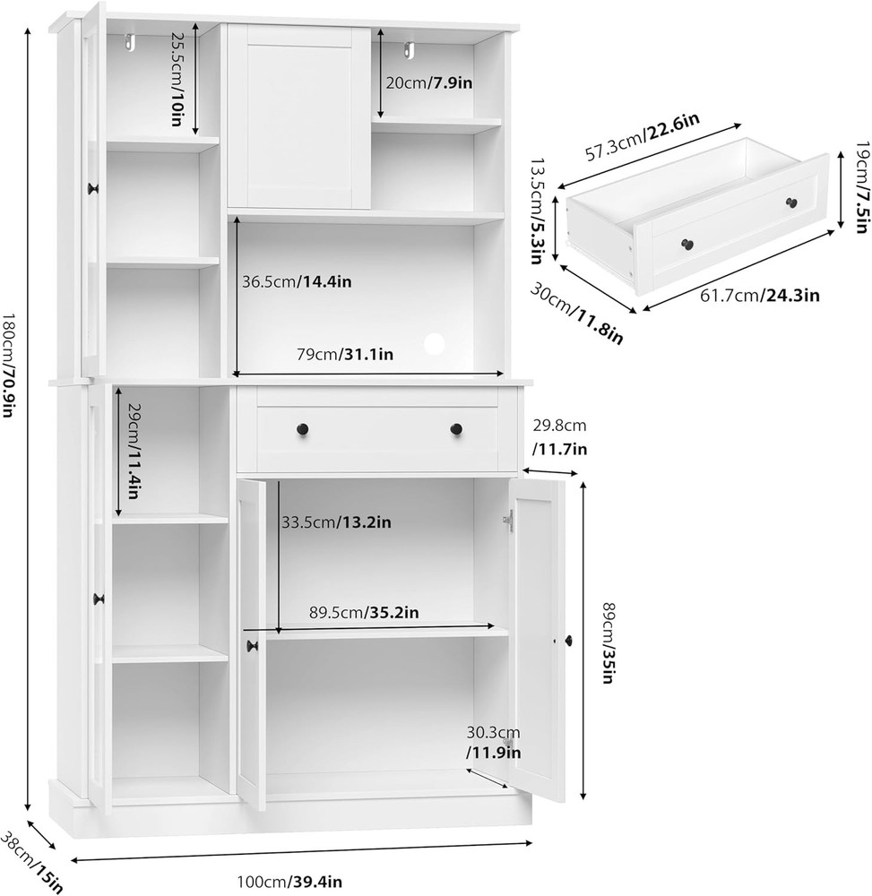 $ 59.633-Tiers Bathroom Storage Cabinet Freestanding Kitchen Pantry Cabinet Organizer