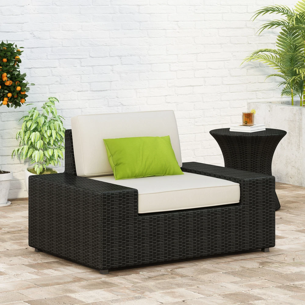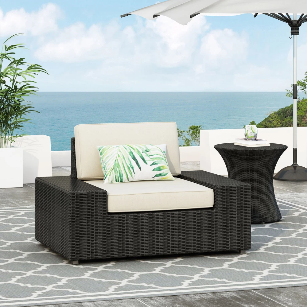 Includes: One (1) Club Chair Material: Faux Rattan Frame Material: Iron Dimension: 30.25 inches deep x 43.25 inches wide x 27.00 inches high NO ASSEMBLY REQUIRED