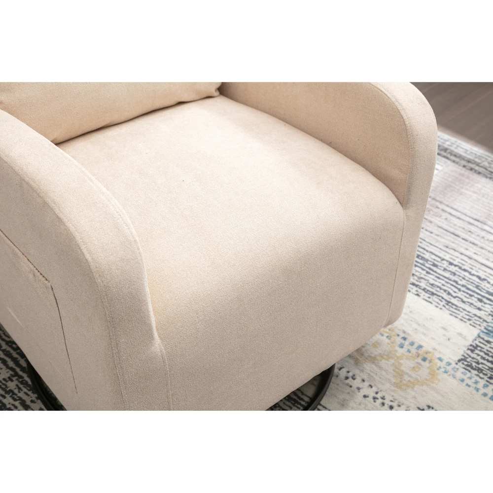 Introducing the Modern Upholstered Swivel Glider Rocking Chair, perfect for nurseries. This Misty-colored rocking chair has a cozy high backrest and armrest, creating a comfortable space for both parent and baby. Upholstered with polyester and filled with foam, this chair has a weight capacity of 275 lb and a durable frame made of solid wood, plywood, and metal base. Its metal base allows for a smooth and gentle 360-degree swivel motion and forward and backward gliding. The included lumbar pillow offers additional lower back support, making it easier for moms and dads to lean back and relax.Features: 360-degree swivel motion and forward and backward gliding for a smooth ride High backrest and armrest provide comfort for both parent and baby Lumbar pillow included for additional lower Free Shipping Over $49.99* Details Modern Upholstered Swivel Glider Rocking Chair 360 Degree Arm Chairs for Nursery Product Description: Introducing the Modern Upholstered Swivel Glider Rocking Chair, perfect for nurseries. This Misty-colored rocking chair has a cozy high backrest and armrest, creating a comfortable space for both parent and baby. Upholstered with polyester and filled with foam, this chair has a weight capacity of 275 lb and a durable frame made of solid wood, plywood, and metal base. Its metal base allows for a smooth and gentle 360-degree swivel motion and forward and backward gliding. The included lumbar pillow offers additional lower back support, making it easier for moms and dads to lean back and relax. Features: 360-degree swivel motion and forward and backward gliding for a smooth ride High backrest and armrest provide comfort for both parent and baby Lumbar pillow included for additional lower back support Space-efficient design that doesn't take up much room in a nursery Tested for over 10,000 chemicals to improve indoor air quality