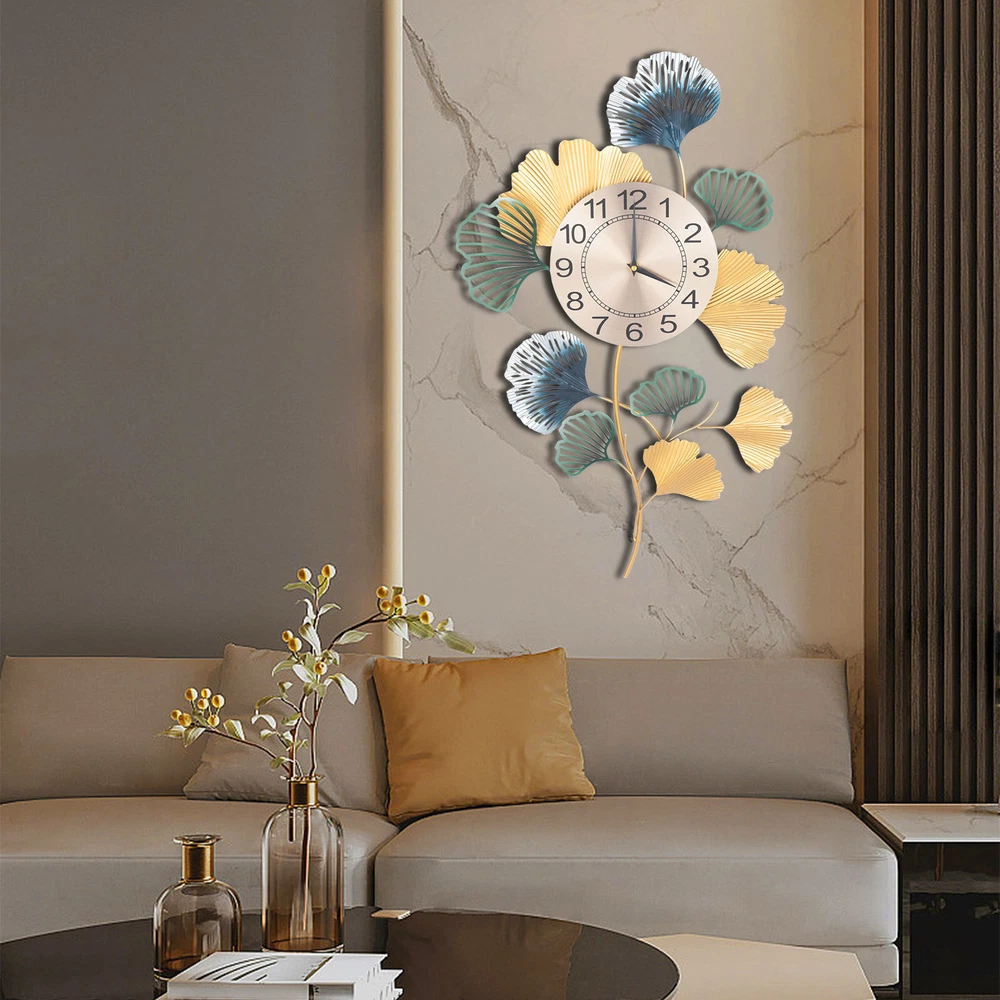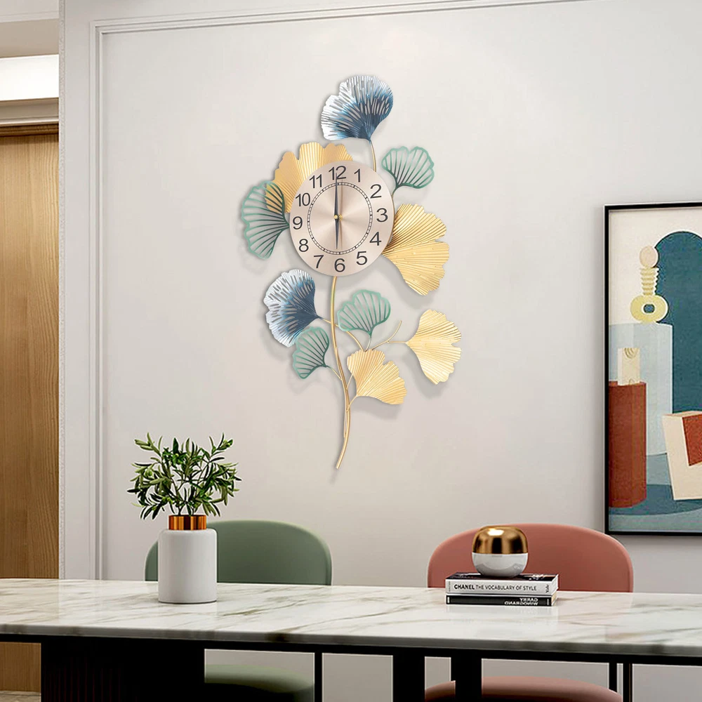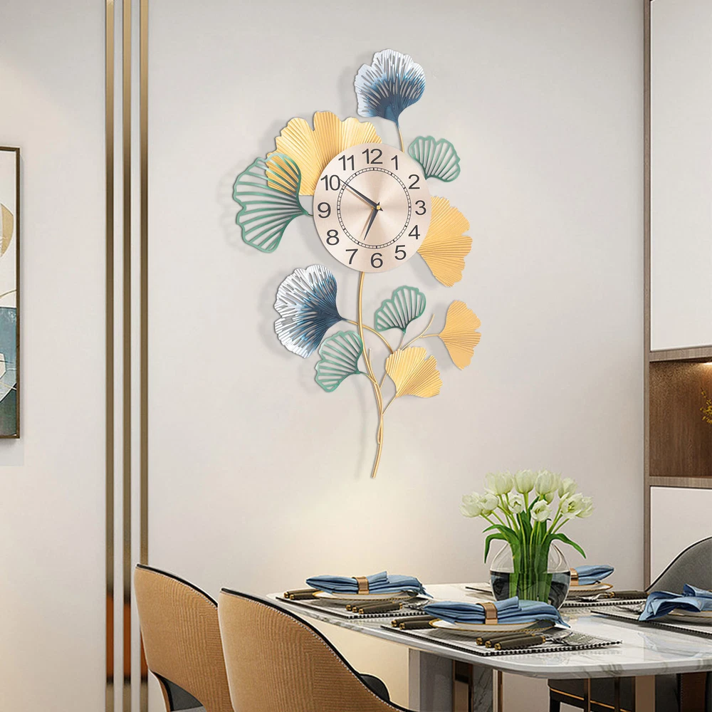 Modern Wall Clock Giant Colorful Quartz Clock Ginkgo Leave Shape Silent Clock