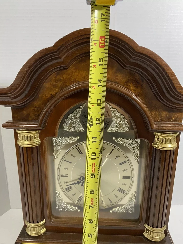 This Modern Westminster Chime Quartz Battery Colonial Bracket Style clock is a beautiful addition to any room. With its rectangular shape and brown color, it is made of wood, brass, and glass materials. The clock features an analog display type with Roman numerals and a quartz movement powered by battery. It also has a Westminster chime sequence and is designed with a colonial style bracket. This clock is 14 inches in length, 18 inches in height, and 8 inches in width, with a weight of 8 lbs. It is suitable for boys and girls and can be placed in any room of your home.