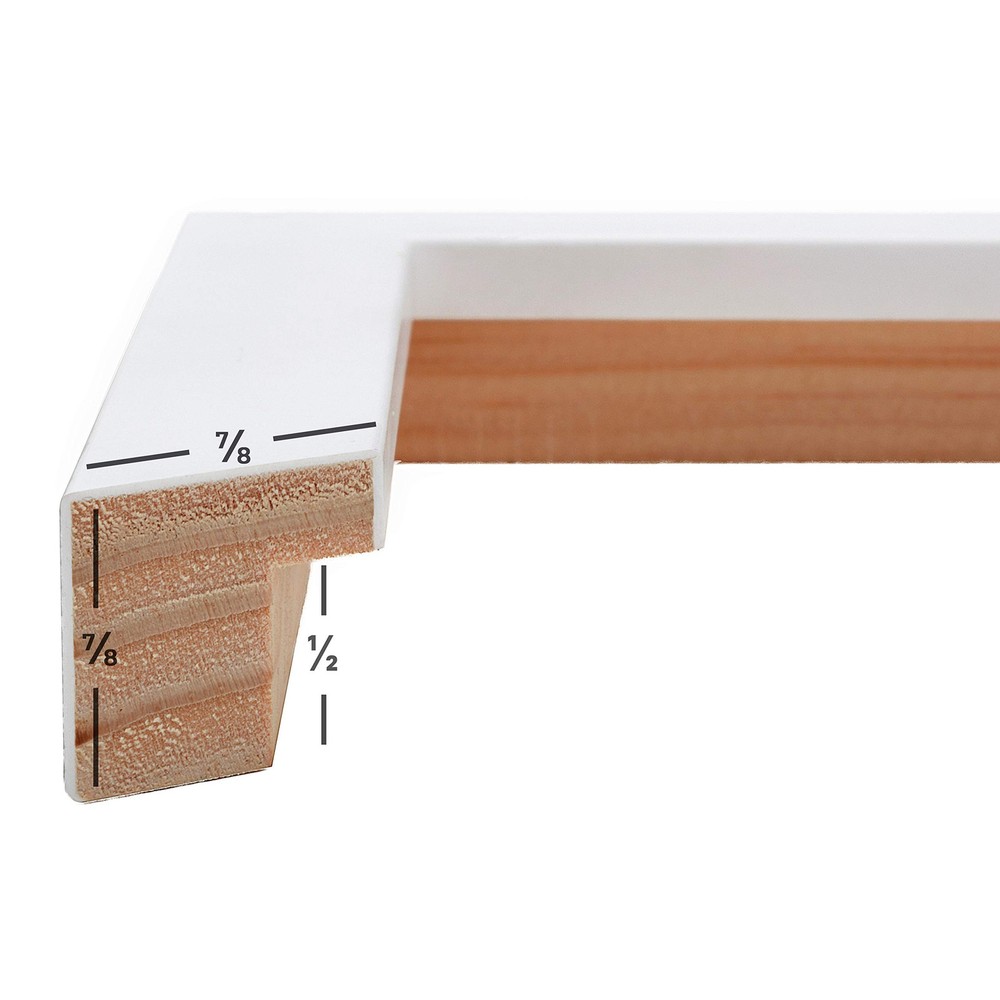 Contemporary style; white; smooth composite finish Frame includes: acrylic facing, cardboard backing and hanging kit (assembly required) Frame holds a 18 inch by 24 inch photo/print/poster (viewable area reduced by 1/4 inch on each side due to frame lip) Frame moulding is .875 inches wide; solid wood construction Frame is designed for WALL HANGING only (hanging hardware allows for portrait or landscape orientation)