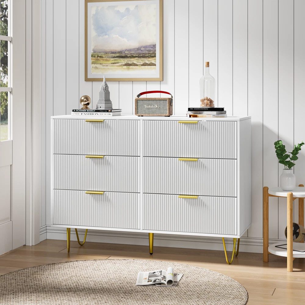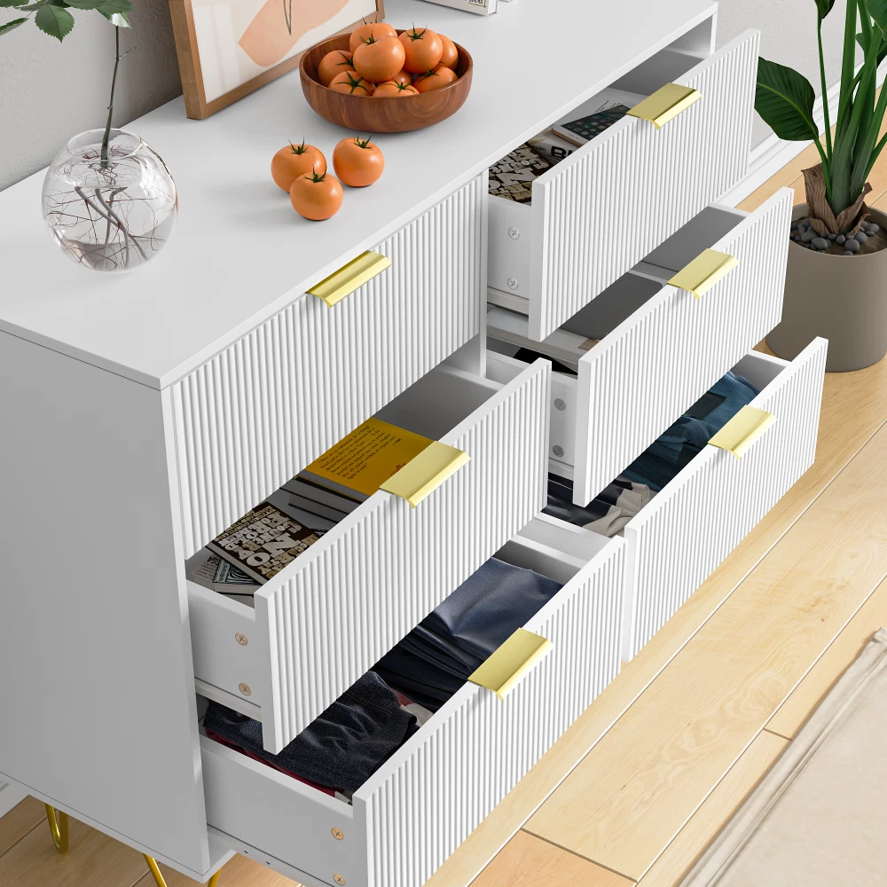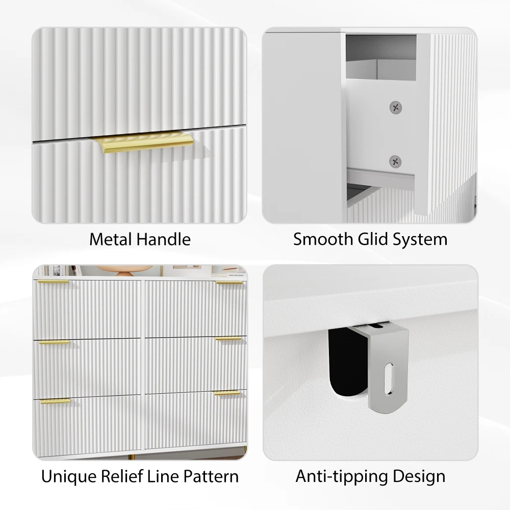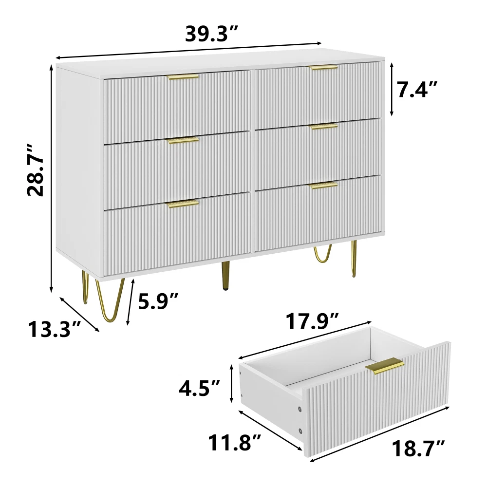 listing template VISIT OUR STORE SIGH UP FOR EMAIL Modern White 6 Drawers for Bedroom Wooden Drawers Cabinet with Gold Handles Product Features 【Ample Storage Space】Size at 39.3"L x 13.3"W x 28.7"H, the wide wooden top can hold your lamp, photos and flower, the 6 large drawers provide enough storage space for clothes, books and all your bedtime items, keep your items organized and room tidy! 【Sleek Modern Design】This Drawers features a minimalist design with clean lines and a pristine white finish, complemented by elegant gold handles. Its contemporary style makes it a perfect match for any modern living room, bedroom, hallway, or entryway. 【Multi-Purpose】 NOT only a dresser, it can also be used as beside tabe, TV stand, clothing organizer/lingerie dresser, entryway table, accent storage cabinet for living room. Ideal for bedroom, closet, living room and entryway 【Stable Sructure】Strong gold leg and water-resistant wood top offer stable support and ensure years of use. Also, the storage drawer unit has anti-tipping accessories to prevent incidents. "Stylish Storage Solution: Picture this chic white dresser with these cute fluted drawer panels – it's not just a dresser, it's like a piece of art that adds a touch of elegance to the room, creating this super neat and organized family vibe. product size:L39.3Inch*D13.3Inch*H28.7Inch This small storage dresser could easily fit in various living spaces: living rooms, bedrooms, hallways, entryways, closets, nurseries, etc. Easy Assembly: This modern dresser is designed with ease of use in mind. It comes with simple assembly instructions and all necessary hardware, allowing you to quickly set it up without hassle." Six drawers it's not just a dresser, it's like a piece of art that adds a touch of elegance to the room, Anti-tipping Design Safety first, right? That's why this kids' dresser comes with not one, but two Anti-Tipping devices, keeping it secure and worry-free, especially with little ones or pets around. Gold Leg If you're on the lookout for a dresser that not only stores stuff but also brings character and style to the room, trust me, this is the one you need Security testing Place it in the bedroom, nursery, or anywhere you like Shipping Policy 1. Ship worldwide from New Jersey by reliable shipping companies -- USPS, UPS, FEDEX, DHL, etc., and only to VERIFIED PAYPAL ADDRESS. Transport Delivery ETA. Package handling only takes 1 business day at our warehouse, so please make sure entering correct payment and shipping information before checking out. Once your payment is completed, we are not going to accept any more changes to your order. 2. International Buyers – Please Note: a. Import duties, taxes and charges are not included in the item price or shipping charges. These charges are the buyer's responsibility. b. Please check with your country's customs office to determine what these additional costs will be prior to bidding/buying. 3. Please check your shipping address carefully before checkout, it can't be changed if order completed. 4. Orders placed on weekend will be shipped within 2 days.Notification of shipment with tracking number will be sent to buyers. 5. Standard shipping: 2-7 business days Expedited Shipping: 2-3 business days One-day Shipping: 1 business day International shipping: Varies 6.Ship within 1 business day once payment completed. Notification of shipment with tracking No. will be sent to buyer. 7.We offer discounts for combine shipping. Please contact us first if you need combine shipping, and an invoice with discount will be sent to you. 8.Please allow 5 business days for delivery to US destinations on any eBay orders and 14 business days for delivery to any International destinations. We highly recommend our buyer choose priority/expess mail for international delivery which is much more stable. Return Policies 1. Refunds given only if item DOA and cannot be replaced via PAYPAL . If so, Please contact us with 5 days since you receive the item and and return to us within 30 days from the delivery date for exchange or refund. 2. If you need return, please contact our customer service representative, let us know the detailed problem and send us some pictures for confirmation. Payment Payment should be sent within 8(EIGHT) days of auction closing. Feedback If you are dissatisfied for any reason, please do not be quick to leave negative/neutral feedback. We work hard to make sure EVERY CUSTOMER 100% SATISFIED and resolve any problem for you. Work Time Work Time: Monday to Saturday About Us | Newsletter| Feedback| Contact Us Copyright © 2021 ScreenAid. All rights reserved. 无标题文档 Modern White 6 Drawers for Bedroom Wooden Drawers Cabinet with Gold Handles Product Features 【Ample Storage Space】Size at 39.3"L x 13.3"W x 28.7"H, the wide wooden top can hold your lamp, photos and flower, the 6 large drawers provide enough storage space for clothes, books and all your bedtime items, keep your items organized and room tidy! 【Sleek Modern Design】This Drawers features a minimalist design with clean lines and a pristine white finish, complemented by elegant gold handles. Its contemporary style makes it a perfect match for any modern living room, bedroom, hallway, or entryway. 【Multi-Purpose】 NOT only a dresser, it can also be used as beside tabe, TV stand, clothing organizer/lingerie dresser, entryway table, accent storage cabinet for living room. Ideal for bedroom, closet, living room and entryway 【Stable Sructure】Strong gold leg and water-resistant wood top offer stable support and ensure years of use. Also, the storage drawer unit has anti-tipping accessories to prevent incidents. "Stylish Storage Solution: Picture this chic white dresser with these cute fluted drawer panels – it's not just a dresser, it's like a piece of art that adds a touch of elegance to the room, creating this super neat and organized family vibe. product size:L39.3Inch*D13.3Inch*H28.7Inch This small sto