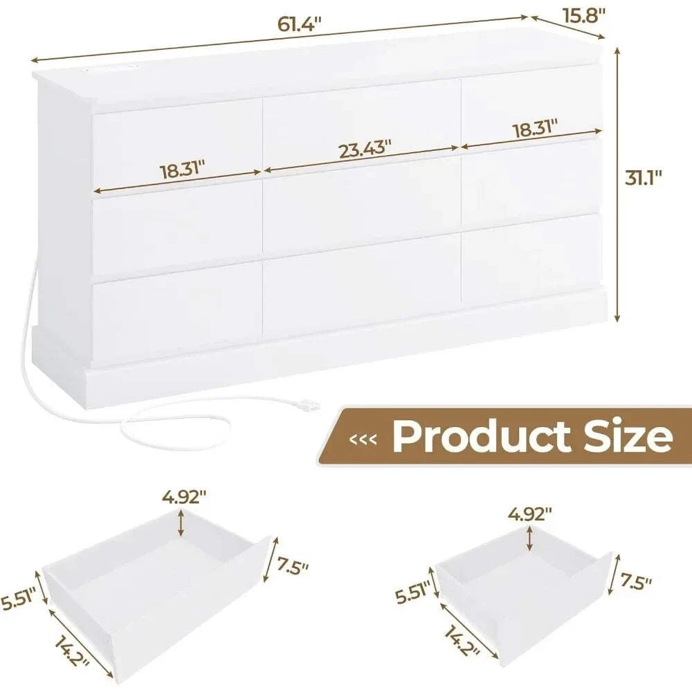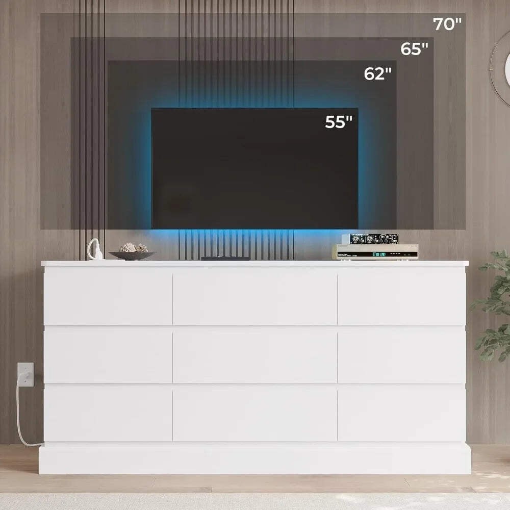 $ 363.7912 Drawer Wide Dresser with Charging Station and LED Lights for Bedroom
