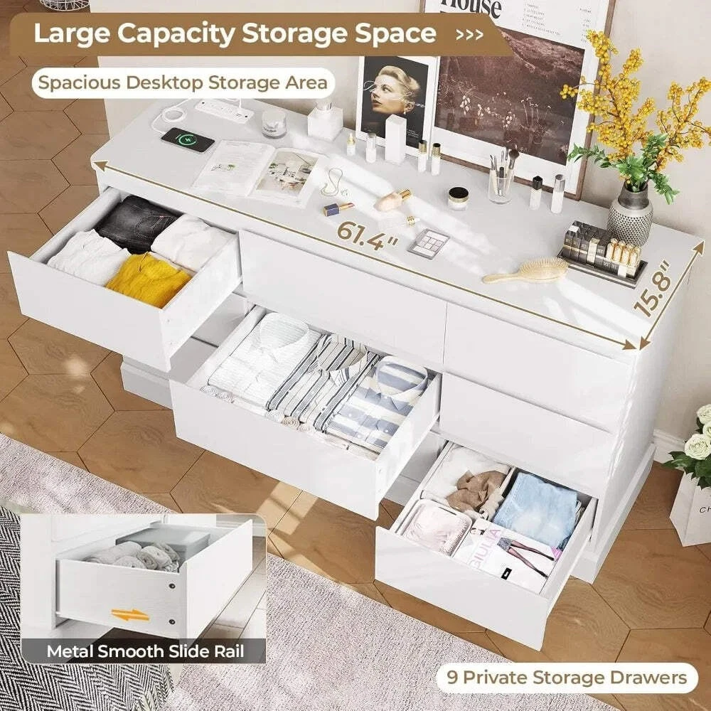 Mid-century modern 9-drawer wide dresser with ample storage space