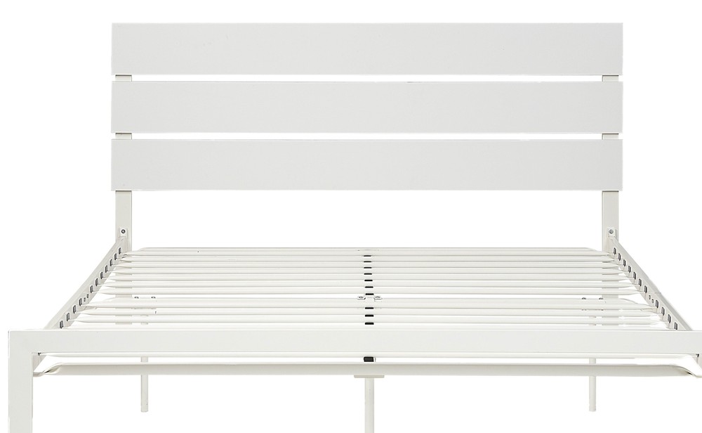 This queen bed is a sleek, modern addition to any bedroom! The white metal frame gives it a clean, minimalist look while being sturdy enough to hold up to 500lbs. Assembly was quick and easy, and the low-profile design makes the room feel more spacious. Love how the headboard adds just the right touch of height without being overwhelming. Great value for a stylish, durable bed frame!