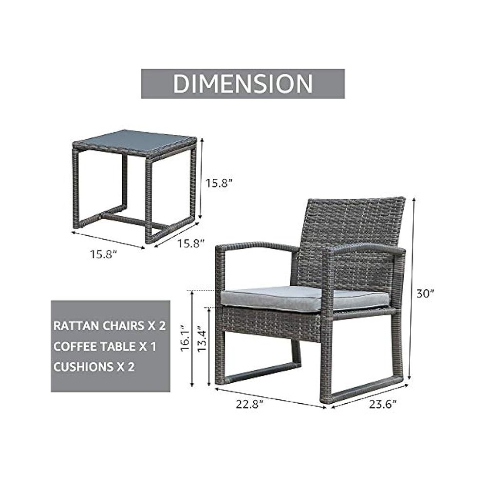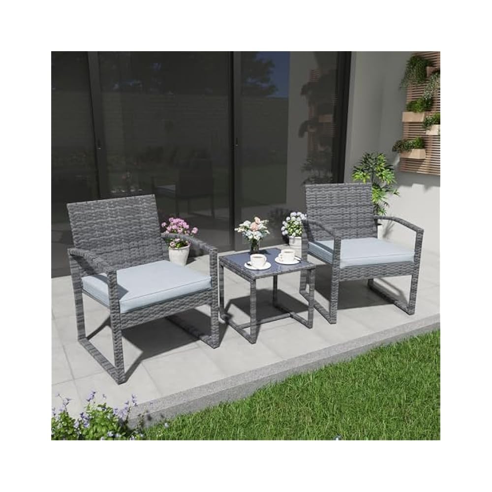 3-Piece PE Rattan Patio Set with Table & Chairs for Outdoor Porch