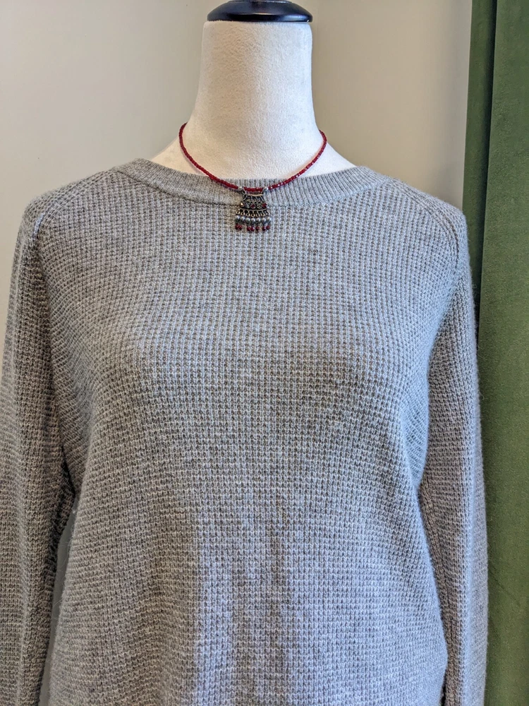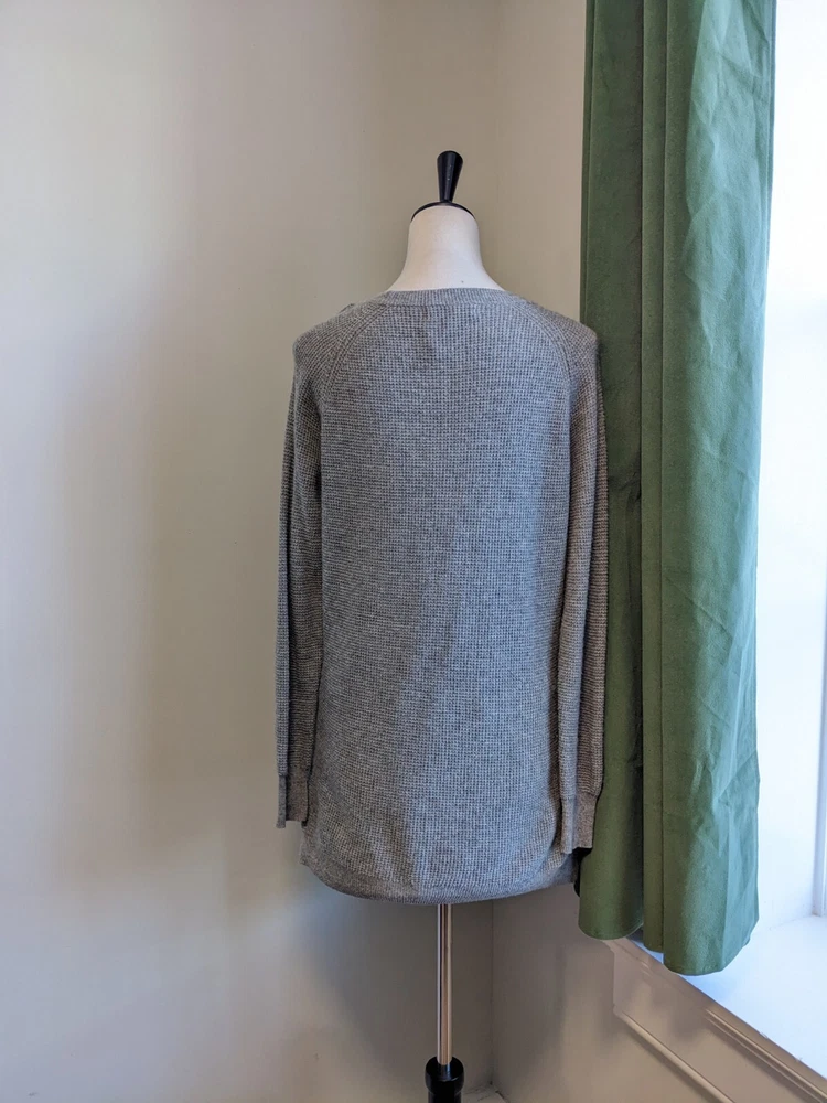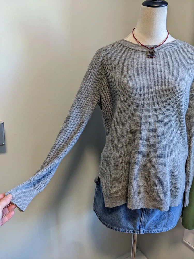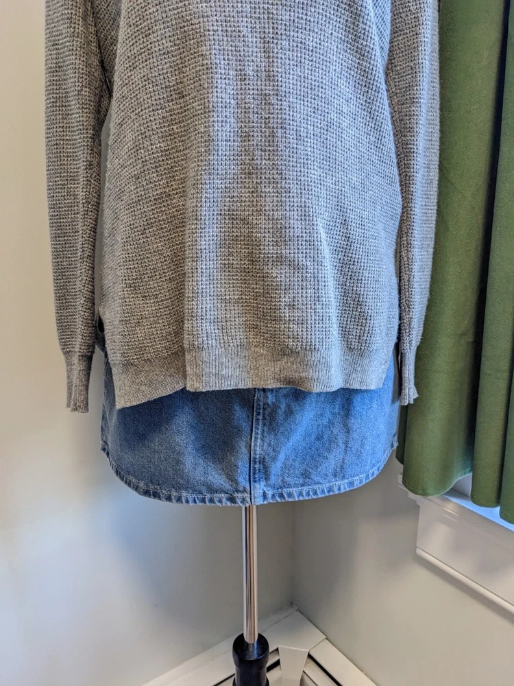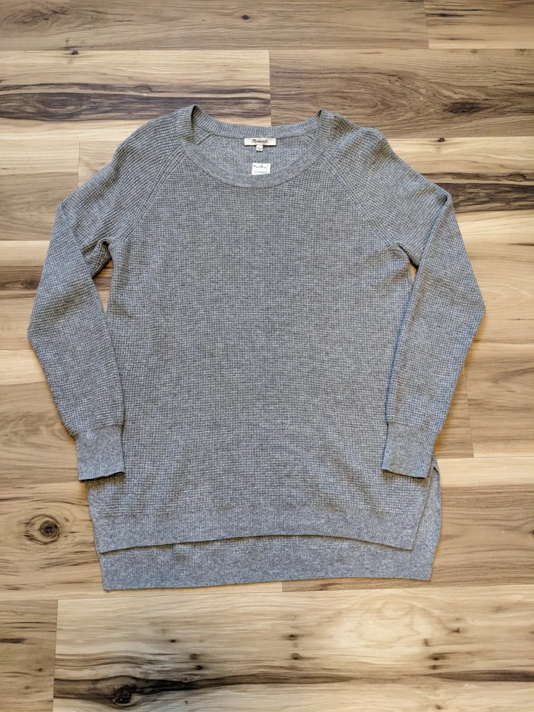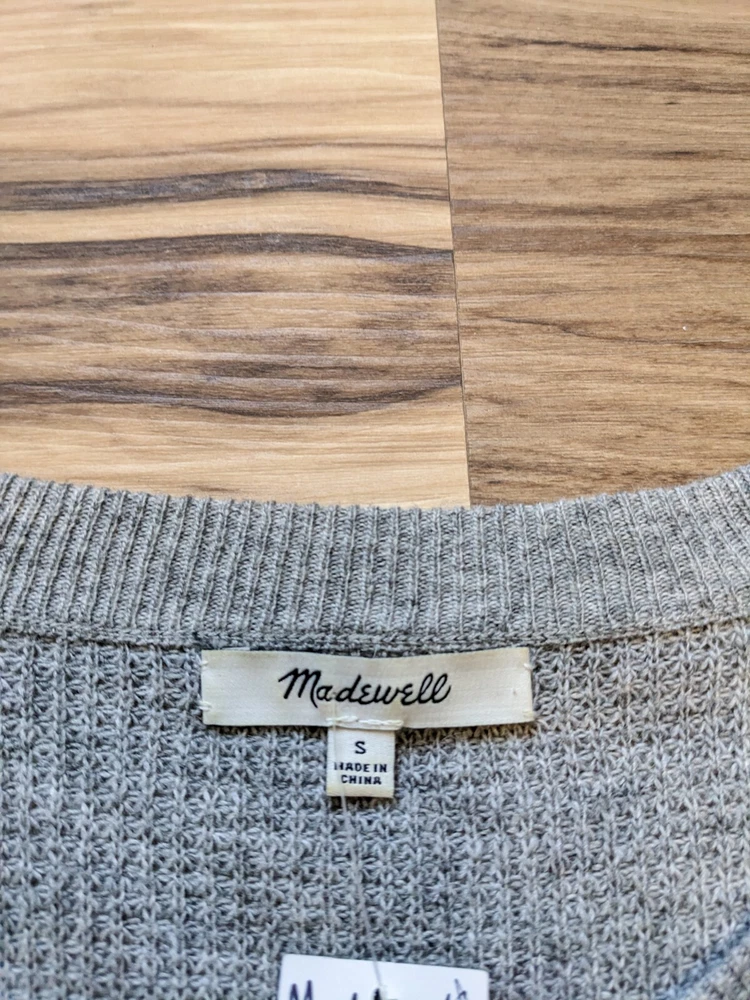 Elevate your wardrobe with this modern and minimalist boho grunge Madewell gray sweater. This sweater features a comfortable fit and a stylish design. Made with high-quality materials, this sweater is perfect for any occasion. The gray color is versatile and easy to style, while the Madewell brand is known for its quality and attention to detail. Ideal for those who want to stay on-trend while still enjoying comfort and practicality. Tagged: small, fits small to medium Pit to pit: 20" Length: 27" Condition: excellent condition Made by: Madewell Fit: voxy Fabric: wool blend Stretch: yes Weight: lightweight Closure: pullover Pockets: no