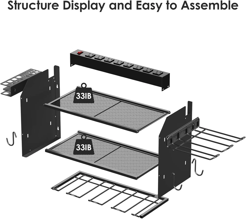 Store New Arrivals Add to Favorite View Feedback Contact Fast deliveries to the customer's home Quality customer service John Make the customers happy! Modular Power Tool Organizer Wall Mount Charging Station, Black 6 Drills Holder with 8 Plug Power Strip, Garage Drill Battery Heavy Duty Metal Shelf, Utility Rack with Hooks, Side Storage. Description Wall mount power tools organizer come with 6 slots drills holder, 4 hooks, 2 shelves and drill bit rack, built-in power strip, 3 layer structure can keep different rechargeable tools organized in the work area and save your bench space. Garage mechanic tool battery charging station with 8 outlets to keep all your batteries charged. with 6ft power cord, can easily handle your battery and charger, It's a way to make your garage or work area cleaner at a fraction of the cost. Heavy duty and solid wall mounted organizer can handle 6 cordless drills and other tools, great addition to the shop. Utility rack size: L:16.5in * W:8.7in * H:12in (Accessories size not included). Add a tool box on the side to store multiple types of gadgets - Commonly used drill bits, tweezers, screwdrivers, also equipped with four hooks to hang tools such as tape measures or wrenches. to increase the diversity of storage. Easy to assemble and mount on a peg board, If you need more storage space, you can connect the two shelves (or more) by screws. Each layer of the grid can support a maximum weight of 33IB. Made from heavy gauge steel. Product Description Convenient for charging tool batteries Power Tool Organizer with Charging Station The convenience of having power plug within reach when you need one! Supply power, tidy your workbench and save space. 6 drills holder and other tools organizational kits. 8 AC outlets charging station and surge protected. Power tool organizer wall-mounted and modular DIY. Rack Mounted on Pegboard Brand Overview Welcome to CCCEI Brand, we provide professional office desktop socket and industrial socket equipment, more item is built for business and furniture use, and now we also develop some practical garage tools organizers. We are very happy to serve our customers and offer more favorable discount for more cooperation. CCCEI brand power tool organizer with charging station, provide power solutions for garage power tools. Built-in 8 outlets metal heavy duty power strip, 15 Amp not only charge your batteries, but also supply power to power tools. Save the cost of purchasing additional power strip. Metal 8 outlets wide spaced power strip - Output: 125V/15A/1875W. Surge Protector: 1200J. Power Cord: 6FT 14AWG. Aluminum Alloy Housing. Wall mount power tools organizer come with 6 slots drills holder, 4 hooks, 2 shelves and drill bit rack. Save your bench space. Rack Size: L:16.5inch * W:8.7inch * H:12inch. Compartment Height: 5.35inch. Double layer structure: the maximum bearing capacity of each layer is 33IB. Features: Modular design, any shelf of the same size can be combined. Click "CCCEI" above to our brand store to get more style options: 6 Drills Tools Organizer More Tools Organizers 3 Layer 3 2 Shelf 2 6 Drill Slots 4 4 Hooks 4 12inch High 12inch 3 Layer 4 2 Shelf 3 6 Drill Slots 4 4 Hooks 8 12inch High 16.57inch 3 Layer 3 2 Shelf 1 6 Drill Slots 8 4 Hooks 8 12inch High 16.57inch 3 Layer 4 2 Shelf 3 6 Drill Slots 4 4 Hooks 8 12inch High 16.57inch 3-Layer Tools Organizer 4-Layer Tools Organizer 8 Drills Tools Organizer Pegboard Tools Organizer Built-in Sturdy Metal Heavy Duty Power Strip Function Analysis Side Drill Bit Rack Side storage box for commonly used drill bits, screwdrivers and clips. Can help you store more types of accessories. Four Hooks 4 hooks for hanging wrenches, tape measures and other items. 6 Slots 6 slots for power tools, reinforced design, strong and durable. Two shelves The double layer is designed to store tool's batteries, etc. Each layer can weigh up to 33IB. Save Space and Keep Your Desk Tidy Style Heavy Duty Country of Origin China Shelf Weight Capacity 33 Pounds Room Type Garage Is Customizable No Assembly Required Yes Product Dimensions 8.7"D x 16.5"W x 12.6"H Material Metal Finish Type Metal Item Package Quantity 1 Indoor/Outdoor Usage Indoor Batteries Required? No Item Weight 8.31 pounds Finish Metal Number of Shelves 2 Special Features Modular Special Feature Modular Mounting Type Wall Mount Shelf Type Floating Shelf Color Black Recommended Uses For Product Tools Included Components 6 slots drills holder, 4 hooks, 2 shelves, drill bit rack, built-in power strip Size 6FT Cord ABOUT US We offer the best prices around on high quality products. Our E-store includes media such as books, movies, music and games while offering electronics, toys, sporting apparel, clothing, tools, general home, garden items and more. SHIPPING We are always working hard to ensure your package arrives as soon as possible. Please understand that some factors like weather, high postal traffic, and the performance of shipping companies are outside of our control. We offer free shipping to the lower 48 states and ship within 2 business days of payment, usually sooner. We do not accept P.O. Boxes. Please provide a physical address. For shipping outside of the continental USA, we only use eBay's Global Shipping Program. The item is shipped to KY and then sent to the rest of the world. International customers are responsible for all duties and taxes. Continue to 'check out' to calculate costs for shipping the item to your country. Messages regarding eBay's Global Shipping Program MUST be directed at eBay EXCLUSIVELY. RETURNS We offer a 30-Day Return Policy on items in which you are not completely satisfied with. You have the option of a full-refund or an exchange of the item. No returns are available on items shipped outside of the USA PAYMENT We accept PayPal. CONTACT US This page content is yet to come Please ad us to your favorite seller and visit again later Thank You CUSTOMER SATISFACTION We try our very best to make sure every cust