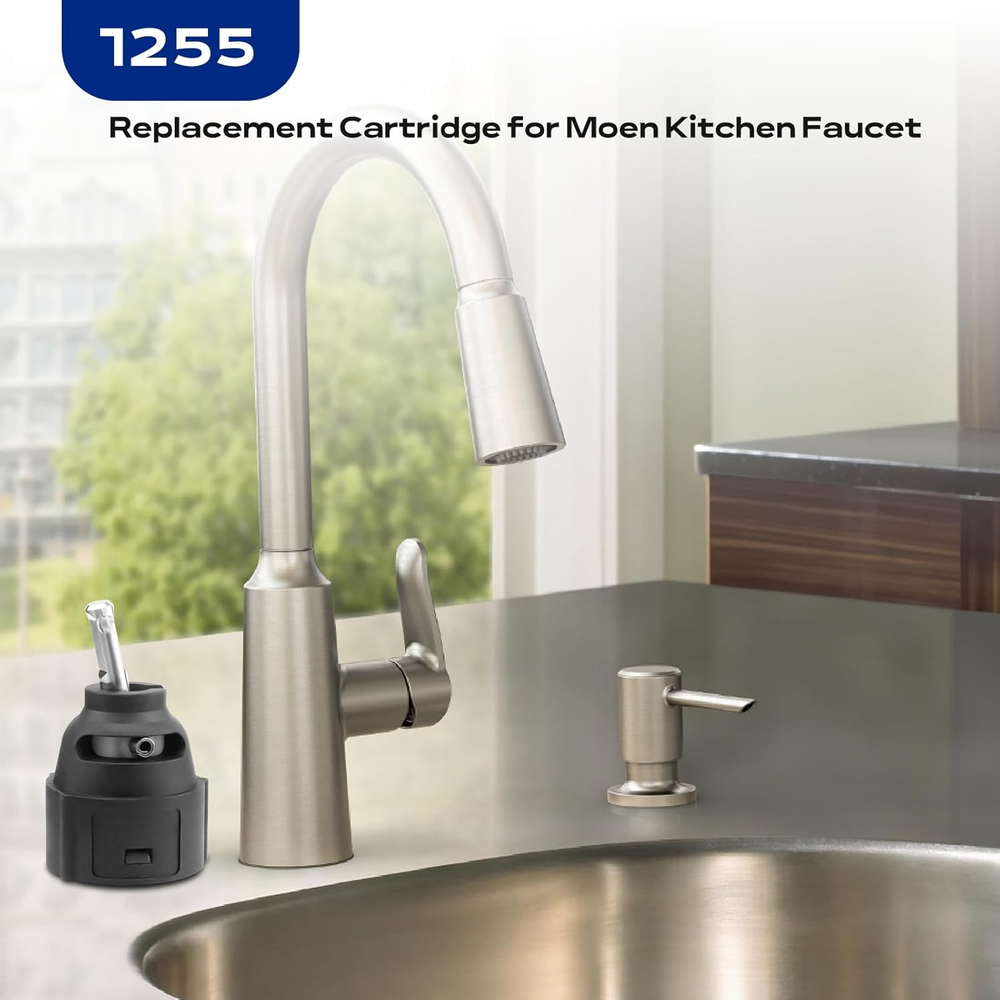 【COMPATIBILITY】1255 Replacement cartridge compatible with Moen kitchen faucets. 【PREMIUM QUALITY】Kitchen faucet cartridge is made from solid brass, durable plastic and rubber, which won't be deformed or damaged after long time use, works in good conditions all the time without leaking. 【PRODUCT FUNCTION】Single handle cartridge can offer precise control by its smooth handle movement. 【PACKAGE CONTENTS】1* single replacement cartridge and 1* stainless steel lever are included in the package. 【AFTER BUYING SERVICE】Please feel free to contact us if you have any question about 1255 replacement cartridge kit through Amazon. GJK 1255 Replacement Cartridge for Moen Kitchen Faucet with Stainless Steel Lever High-Quality Material Easy to Install Sturdy Durable Package: 1* Single Replacement Cartridge, 1* Stainless Steel Lever