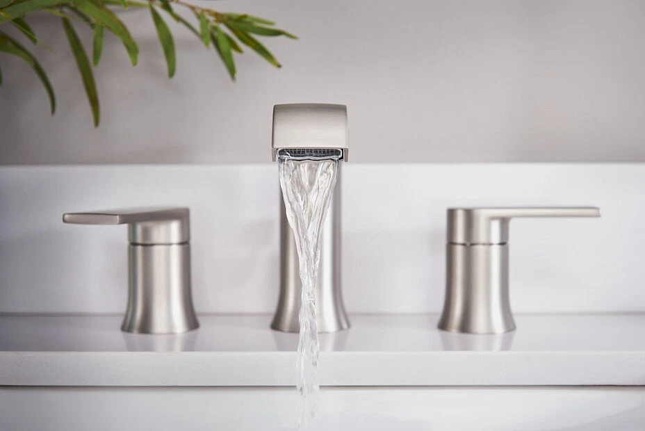 Moen 84763SRN Spot Resist Brushed Nickel Genta 2 Handle Bathroom Faucet Moen 84763SRN Spot Resist Brushed Nickel Genta 2 Handle Bathroom Faucet The Genta bath suite boasts contemporary, curved edges for an appealing, yet substantial style that brings a sleek feeling to the Bath. Spot Resist™ brushed nickel finish resists fingerprints and water spots for a cleaner looking bath two-handle lever handle makes it easy to adjust the water faucet handles can be installed between 8" to 16" for a more customized widespread installation complies with Americans with Disabilities Act (ADA) specifications features Duralock™ quick connect system for easy installation aerated flow is ideal for everyday bathroom tasks, like brushing teeth and washing hands meets current legislation, including ab1953 (california) and s152 (vermont) Listing and template services provided by inkFrog