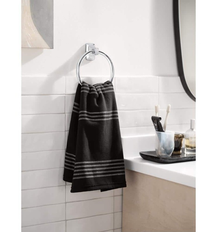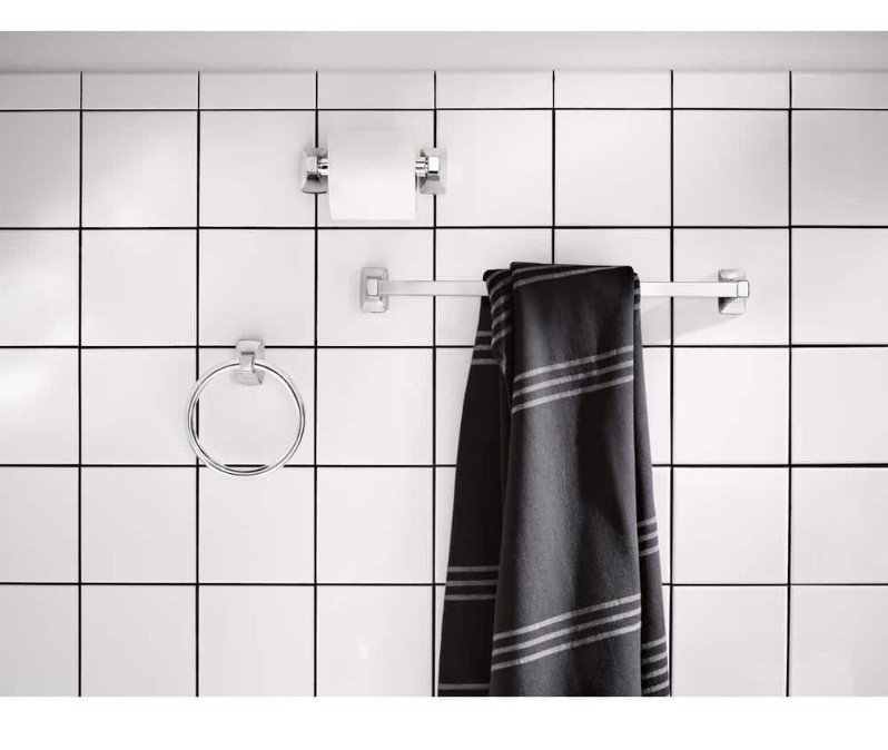 The Moen YB0193CH Adler 3-Piece Bath Hardware Set with 18 inch Towel Bar in Chrome is a stylish and modern accessory set perfect for adults in the bathroom. The set includes a towel set, toilet paper holder, towel ring, and towel rack, all in a sleek chrome finish. The elegant silver color and contemporary design make this set a great addition to any bathroom, adding a touch of sophistication to your home decor. The high-quality Moen brand ensures durability and reliability for years to come.