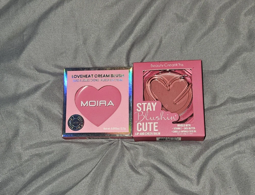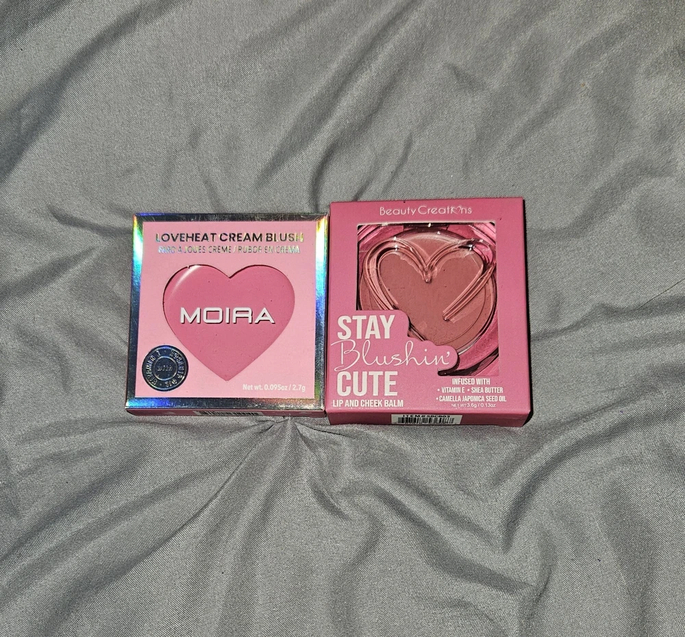 MOIRA Loveheat Cream Blush in I Fancy You BNIB •a beautiful lightweight buildable cream formula that melts & blends with ease. • Infused with Vitamin E & Rosehip Oil, this creamy formula will leave a natural dewy flush finish. ☆Beauty Creations Stay Blushin Cute Lip and Cheek Balm in She's Got It BNIB •SHE'S GOT IT - LIGHT FUCHSIA • This cream blush is multi-use for your lips & cheeks. A seamless pillowy texture enriched with Camellia Japonica oil & Vitamin E. • The lightweight but buildable creamy formula nourishes your skin while giving you a natural flushed look. #Moira #moiracosmetics #beautycreations #pigmented #creamblush #blush #stayblushincute #shesgotit #ifancyyou #bundle