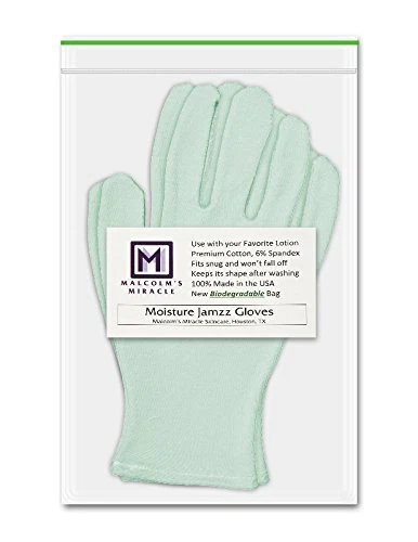 Uses the body's own heat to open pores, allowing even more of your favorite lotion (not included) to penetrate dry skin. And they are replaceable for two years from date of purchase! Unlike other cheaply made all cotton gloves, these are much thicker and they are made in the USA. And because they have spandex, they fit snugly and won't fall off. Unlike neoprene or latex, they are soft and cool, allowing the skin to breathe. And they will keep their shape after many washings. And if for any reason you are unsatisfied, we are happy to say that we stand by our products 100%. If you are not happy with your purchase, simply contact us by clicking on “Contact Seller”. We make exceptionally good products and we are committed to every customer being happy! Available in different sizes. The most celebrated brand of luxury moisturizing gloves since 2004 with original designs and colors on 94% Premium super-soft high-grade breathable cotton and 6% spandex Wear over your favorite lotion or ointment (not included) for just 30 minutes to see a difference. You do NOT need to sleep in these. True moisturizing gloves fit snugly but comfortably. They breathe and keep their shape after many washings – wash in a lingerie bag and dry flat Made in the USA with minimal packaging and exceptional - If you are unsatisfied for any reason, simply CONTACT SELLER and we will do our best to make it right. We are 100% committed to customer happiness We offer them in different sizes – not all hands fit into the “one-size-fits-most” category! If you value quality and service above all else - and want to support products manufactured entirely in the USA, then these are for you. We go above and beyond for our customers!
