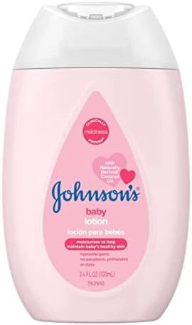 3.4-fluid ounces of Johnson's Mild Baby Moisturizing Pink Lotion with coconut oil hydrates and nourishes your little one's skin and moisturizes to help maintain baby's healthy_x0002_looking skin The improved formula of this hypoallergenic pink baby body lotion is 100% gentle and mild, and free of dyes, parabens and phthalates Made with the naturally derived ingredient coconut oil, the newborn baby lotion is designed with input from parents like you and helps delicate baby skin maintain its natural moisture balance Our reformulated pink baby lotion is specifically designed for baby's unique and delicate skin and is both hypoallergenic and pediatrician- and dermatologist-tested for gentle moisturizing Suitable for babies, kids and adults, this baby body lotion can be used as part of a regular skin care routine by massaging onto skin after a bath or when baby has dry skin for hydration that's gentle enough for the most delicate skin