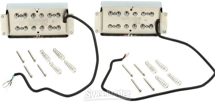 '72 Humbucker Clones with All-American Mojo If you're looking for American-made, vintage-vibe 'buckers for your F-style guitar, look no further than the Mojotone '72 Wide Range Clone Humbucking Pickup Set. These high-quality pickups are made on American soil, in Burgaw, NC, entirely of American parts. They bring back the chime, clarity, and focus of the original '72 F-style wide range humbucker by using threaded magnets rather than the magnetized steel poles used in the '72 reissues. Mojotone also slightly underwinds the neck humbucker, yielding a better tonal balance between the neck and bridge pickup — plus, they use 4-conductor wiring to give you options like coil taps and series/parallel setups. Guitarists at Sweetwater love the sound of Mojotone '72 Wide Range Clone Humbucker Pickups, and we think you will, too!Mojotone '72 Wide Range Clone Humbucking Pickup Set Features: 1 neck and 1 bridge position American-made humbucker replacement set for your Sweetwater is an Authorized Mojotone Dealer Genuine New Item Sweetwater's 2-year warranty Mojotone '72 Clone Humbucker 2-piece Pickup Set - Chrome Humbucking '72-style Neck and Bridge Pickup Set with Chrome Covers - Hardware Included '72 Humbucker Clones with All-American Mojo If you're looking for American-made, vintage-vibe 'buckers for your F-style guitar, look no further than the Mojotone '72 Wide Range Clone Humbucking Pickup Set. These high-quality pickups are made on American soil, in Burgaw, NC, entirely of American parts. They bring back the chime, clarity, and focus of the original '72 F-style wide range humbucker by using threaded magnets rather than the magnetized steel poles used in the '72 reissues. Mojotone also slightly underwinds the neck humbucker, yielding a better tonal balance between the neck and bridge pickup — plus, they use 4-conductor wiring to give you options like coil taps and series/parallel setups. Guitarists at Sweetwater love the sound of Mojotone '72 Wide Range Clone Humbucker Pickups, and we think you will, too! Mojotone '72 Wide Range Clone Humbucking Pickup Set Features: 1 neck and 1 bridge position American-made humbucker replacement set for your F-style guitar Captures the original pickups' chime, clarity, and focus with significant updates Threaded through-bobbin magnets instead of magnetized steel poles yield authentic tone 4-conductor wiring allows options such as coil tapping and series/parallel setup 500k potentiometers recommended Will not fit standard humbucker cavities; specifically designed to replace '72 reissue humbuckers Specification Detail Type Set: Wide Range Humbucker Active/Passive Passive Configuration HH Set Number of Conductors 4 wire plus ground DC Resistance 10.7K (bridge), 9.8K (neck) Connectivity Soldered Number of Strings 6 Covering Covered Color Chrome Features 3+3 Pole Pieces RETURN INFORMATION We want you to be completely happy with your purchase from Sweetwater. If you are not satisfied with your product, you may return it for a refund of the purchase price within 30 days. If your purchase was eligible for Free Shipping, the shipping cost will be deducted from your credit or refund. Returns must be in the complete and original packaging with all accessories and complete documentation (Owner's Manual, warranty card, quick start guides, etc.), show no signs of wear or use, and include a Return Authorization number or be subject to a restocking fee.
