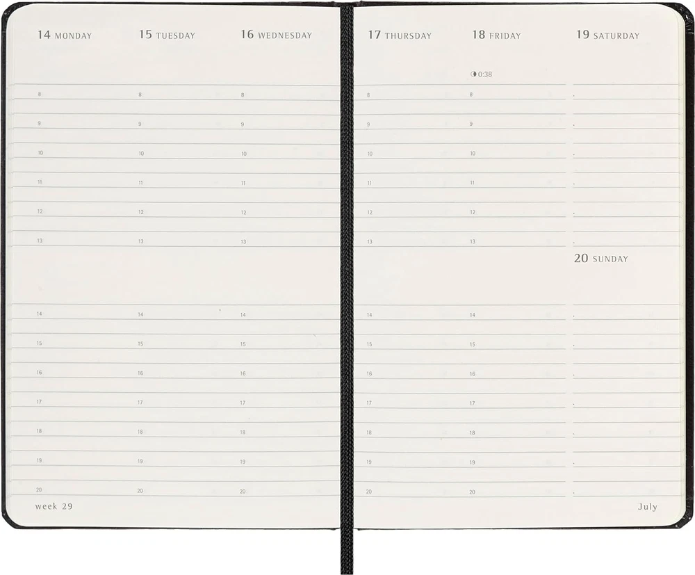 Sheet Size: 3.5 X 6 Item Weight: 120 Grams Format: Engagement Calendar, Notebook, Organizer Type: Not Applicable MPN: Not Applicable Material: Polypropylene, Paper Year: 2025 gtin13: 0692619000436 ISBN: Not Applicable Brand: Moleskine UPC: 692619000436 Target Audience: General/trade Calendar Type: Weekly EAN: 0692619000436 Color: Black Pages: 144