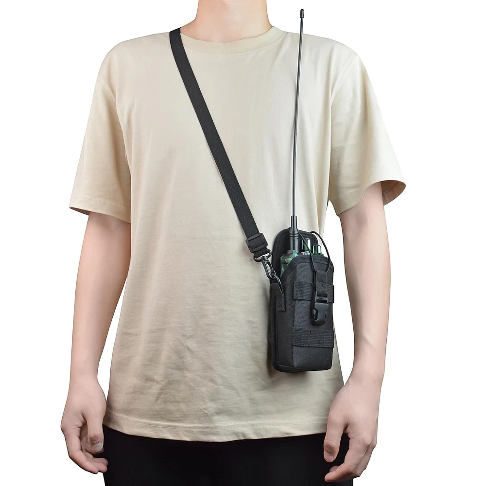 Molle radio pouch size: 3.1"L x 2"W x 8.3"H MOLLE system compatible, easy attach this radio holster to any of your molle tactical vest, backpack, duty belt and other equipment to use for additional storage and customization. This radio holster is made with high-quality nylon materials. Combined with the adjustable strong expansion rope, can be used for radios with the extended battery/battery pack. Come with an adjustable strap, make this molle pouch more multifunctional. Easy to take the radio out and put it back in. The volume knob of the radio is easily accessible, and the radio can be turned on/off without anything in the way. The molle radio pouch fits Baofeng UV-5R, Icom, Motorola, Yaesu, Kenwood portable walkie talkies. Molle radio pouch size: 3.1"L x 2"W x 8.3"H MOLLE system compatible, easy attach this radio holster to any of your molle tactical vest, backpack, duty belt and other equipment to use for additional storage and customization. This radio holster is made with high-quality nylon materials. Combined with the adjustable strong expansion rope, can be used for radios with the extended battery/battery pack. Come with an adjustable strap, make this molle pouch more multifunctional. Easy to take the radio out and put it back in. The volume knob of the radio is easily accessible, and the radio can be turned on/off without anything in the way. The molle radio pouch fits Baofeng UV-5R, Icom, Motorola, Yaesu, Kenwood portable walkie talkies.