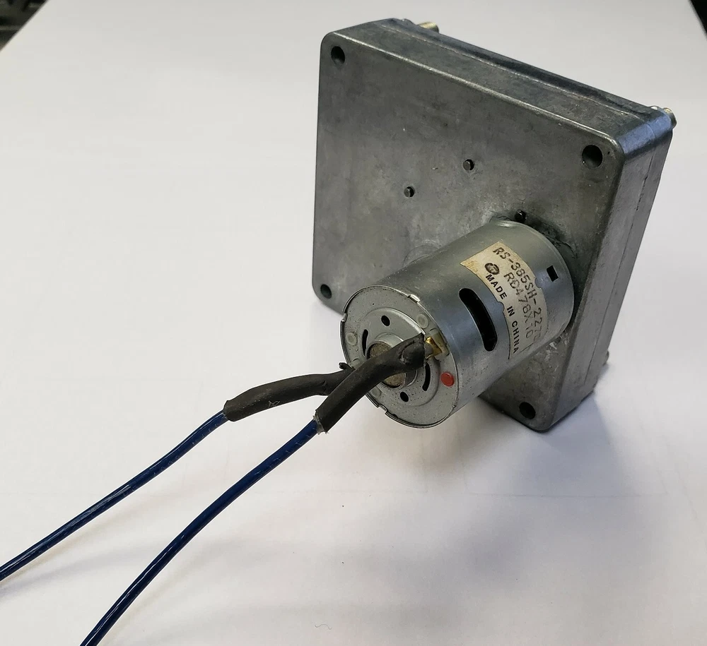 Molon Motors 12 Volt DC Gearmotor - 25 RPM 5/16” Shaft CW/CCW New, surplus and without packaging, gear motor from Molon Motors. Permanent magnet DC gearmotor Model – CHM-1225-1M Rated voltage – 12VDC RPM – 25 @ 12 volts F/L AMP – 1.3 amps F/L Torque – 20 IN-LBS Rotation – CW/CCW Shaft – 5/16” with a flat Dimensions – 3” x 2-3/4” x 3-3/4” Mounting dimensions – (4) 10-32 studs 3/8” long in a rectangular 2-3/8” x 2-1/2” pattern Weight – 16 oz