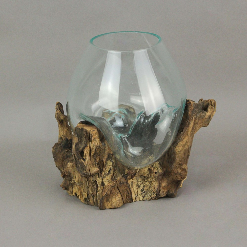 NOTE - DUE TO DEFECTS IN THE GLASS this item is being sold at a reduced price (DAMAGE MAY VARY PER PRODUCT AVAILABLE). Please see last photo for damages/defects. QUALITY CONSTRUCTION - Features a Molten Glass Vase Beautifully Formed Over a Natural Driftwood Base Creating a Stunning Earthy Sculpture You Can Use in a Variety of Ways EACH PIECE IS UNIQUE - Clear Glass Bowl Hand Formed Over an Organic Wood Base Creates a Unique Glass Scape Bottom Great for Decorating a Table, Counter or Desk Our eBay Store About Us Add to Favorite Sellers Large Molten Glass Sculptural Bowl / Plant Terrarium On Natural Driftwood Base NOTE: DUE TO DEFECTS IN THE GLASS this item is being sold at a reduced price (DAMAGE MAY VARY PER PRODUCT AVAILABLE). Please see last photo for damages/defects. NOTE - DUE TO DEFECTS IN THE GLASS this item is being sold at a reduced price (DAMAGE MAY VARY PER PRODUCT AVAILABLE). Please see last photo for damages/defects. QUALITY CONSTRUCTION - Features a Molten Glass Vase Beautifully Formed Over a Natural Driftwood Base Creating a Stunning Earthy Sculpture You Can Use in a Variety of Ways EACH PIECE IS UNIQUE - Clear Glass Bowl Hand Formed Over an Organic Wood Base Creates a Unique Glass Scape Bottom Great for Decorating a Table, Counter or Desk NATURAL ACCENT - Perfect for a Succulent Garden, Air Plants, Greenery, to Grow Herbs or Create One-of-a-Kind Decorative Desktop Terrariums or Fairy Garden OVERALL SIZE - Measures 10 Inches Long, 9.5 Inches High, 8.5 Inches Wide (Due to the Handcrafted Nature Size and Shape Will Vary Slightly by Piece) NOTE: DUE TO DEFECTS IN THE GLASS this item is being sold at a reduced price (DAMAGE MAY VARY PER PRODUCT AVAILABLE). Please see last photo for damages/defects. Truly versatile, this delightful sculptural bowl can also be used to create your own unique tabletop terrarium or centerpiece. This simple yet elegant accent piece features a clear glass bowl hand formed over a natural root base, forming a unique glass-scape bottom that assumes the natural shape of the wood. Grow herbs, air plants, greenery or blooms, or fill with colored sand, shells or glass beads and decorative orbs; the options are only as limited as your creativity. Organic intrigue and earthy allure artistically meld in this glass and wood sculpture that is inspired by nature and perfected by artisans. NOTE: Due to the nature of the materials, no two are exactly alike. Each measures approximately 10 inches long, 8.5 inches wide and 9.5 inches high, but actual dimensions will very slightly by piece. Product Details Color Brown Height 9.5 Length 10 Weight 4.45 LB