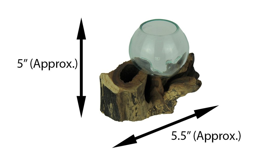 Measures Approximately 6.5 inch Long, 6..5 inch High, 5 inch Wide (Due to the Handcrafted Nature Size and Shape is Approximate and Will Vary Slightly by Piece) Features a Molten Glass Vase Beautifully Formed Over a Natural Teak Driftwood Base Creating a Stunning Earthy Sculpture You Can Use in a Variety of Ways Clear Glass Bowl Hand Formed Over an Organic Wood Base Creates a Unique Glass Scape Bottom Great for Decorating a Table, Counter or Desk Perfect for a Succulent Garden, Air Plants, Greenery, to Grow Herbs or Create One-of-a-Kind Decorative Desktop Terrariums or Fairy Garden A Stylish Home Decor Accent Inspired by Nature and Perfected by Artisans; Size, Shape and Natural Color Variations are Unique to Each Piece Our eBay Store About Us Add to Favorite Sellers Molten Glass On Teak Driftwood Decorative Bowl Vase Terrarium Planter Set of 2 Measures Approximately 6.5 inch Long, 6..5 inch High, 5 inch Wide (Due to the Handcrafted Nature Size and Shape is Approximate and Will Vary Slightly by Piece) Features a Molten Glass Vase Beautifully Formed Over a Natural Teak Driftwood Base Creating a Stunning Earthy Sculpture You Can Use in a Variety of Ways Clear Glass Bowl Hand Formed Over an Organic Wood Base Creates a Unique Glass Scape Bottom Great for Decorating a Table, Counter or Desk Perfect for a Succulent Garden, Air Plants, Greenery, to Grow Herbs or Create One-of-a-Kind Decorative Desktop Terrariums or Fairy Garden A Stylish Home Decor Accent Inspired by Nature and Perfected by Artisans; Size, Shape and Natural Color Variations are Unique to Each Piece Truly versatile, these delightful sculptural vases are simple yet elegant accent pieces full of earthy allure. Their organic intrigue brings visual excitement just for their looks alone, and you can fill them with anything you choose. The teak driftwood provides a beautiful base to the glass as it sinks in and forms the natural contours of the wood. Plant a succulent garden, grow fresh herbs for cooking, create a fairy garden, or arrange colorful stones, shells, or dried flowers; the options are only as limited as your creativity. Organic intrigue and earthy allure artistically meld in this set of glass and wood sculptures that are inspired by nature and perfected by artisans. NOTE: Due to the nature of the materials, no two are exactly alike. Measures 6.5 inches long, 6.5 inches high, and 5 inches wide, size is approximate and will vary slightly by piece. Product Details Color Brown Height 6.5 Length 6.5 Weight 3.58 LB
