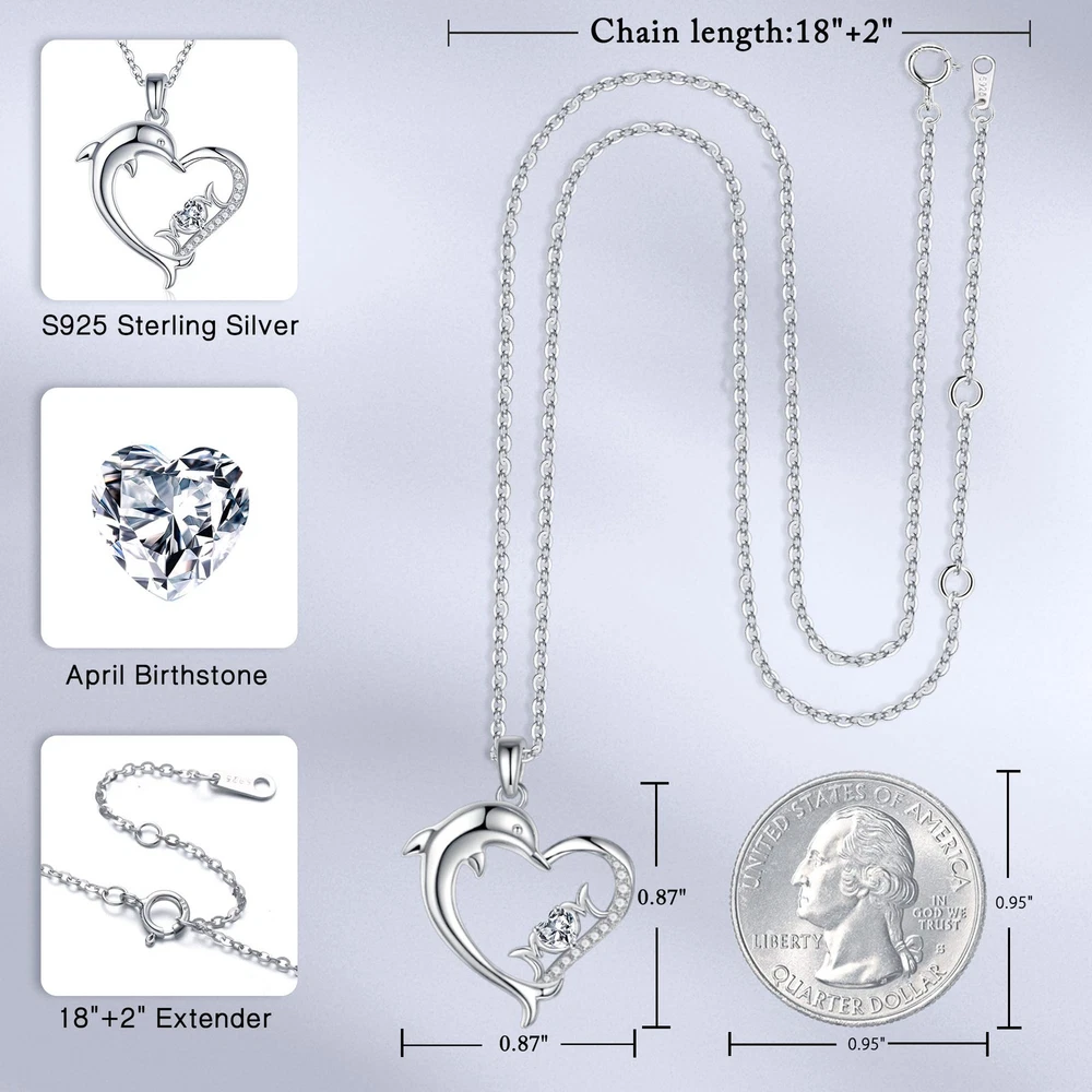 925 Sterling Silver Love Heart Birthstone Necklace: Size: 18"+2" Material: 925 Sterling Silver Package: The love heart birthstone necklace is packaged well with a Delicate Card,an Adorable Little Envelope, a Round Card, a Polishing Cloth and an Box. Jewelry Gifts for Her: Mom Gifts Birthday Gifts Mother's Day Gifts Valentine's Day Gifts Christmas Gifts Best Gifts: Best Gifts for Mom. She will love it the moment she see it. We believe it will be a sentimental surprise for her. Jewelry Attention: When undressing the necklace, wipe each piece with a clean soft cloth to remove oils and perspiration. MEANING: Unique necklace with dolphin design send to your mom and let her know how much she means to you. At the center of the word "mom" is a love heart birthstone and it represents the month of her birth. When she wear this birthstone necklace, she will be the focus in any occasions and genuinely happy for this little surprise. Perfect gifts for your mom on Birthday, Mother's Day, Christmas, Valentine's Day, Anniversary or other special days. DOLPHIN GIFTS FOR MOM: The dainty birthstone necklace comes with a beautiful gift box, a round card and an adorable little Envelope, ready for giving. And our packaging is 99% biodegradable. Perfect gifts for your mom on Birthday, Mother's Day, Christmas, Valentine's Day, Anniversary or other special days. MATERIALS: The chain and pendant are both made of 925 Sterling Silver. This is a high quality stuff that will not turn your skin to green, red or itchy. The chain is strong enough to wear for a long time. SIZE: Chain is 18inches + 2 inches (Adjustable). This length works on practically anyone. It’s a excellent gift choice for your mom daily wearing home or office. AFTER - SALES SERVICE: Your satisfaction is our top priority. If you are interested in or question the necklace, please contact us in time. We will reply you within 24 hours and give you a satisfactory answer.