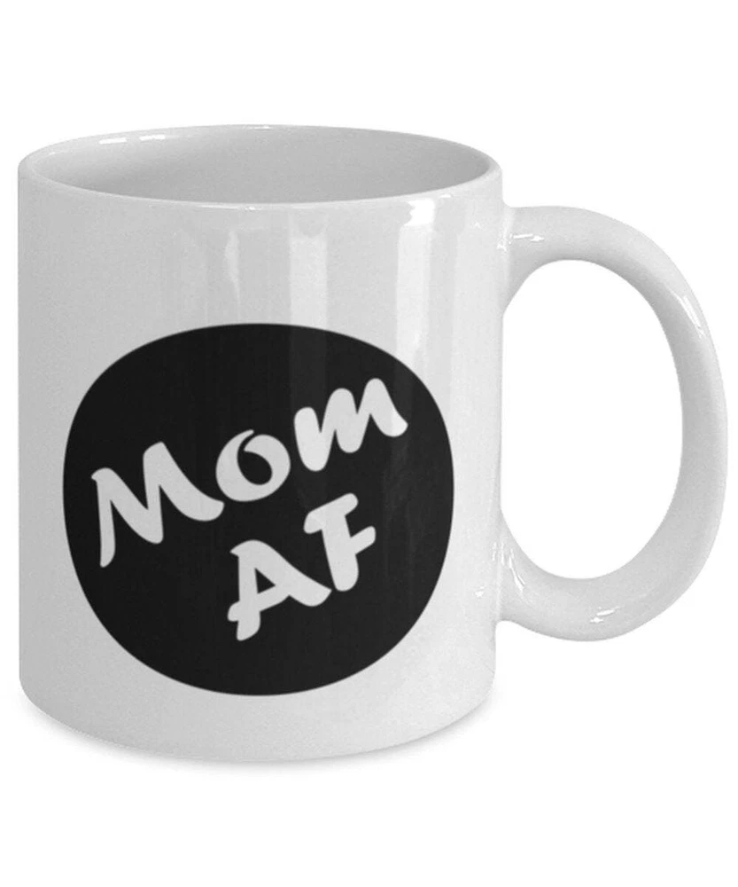Mom Funny Coffee Mug Mom Af Funny Mug For Women Mom Life Mug Mothers Day Mug Product Details.. This high quality 11oz. ceramic white mug has a premium hard coat that provides crisp and vibrant color reproduction sure to last for years. Perfect for all hot & cold beverages. The highest quality printing possible is used. It will never fade no matter how many times you wash it. Material: 100% Ceramic. Print both sides. Dishwasher and Microwave Safe. High Gloss + Premium White Finish. Printed in the U.S.A. Personalized & Custom. We support personalized and custom mug to add custom, when placing an order, you can add notes to the "order note" in shipping address section. Also you can contact us directly via message. Shipping Info. Ready to ship in 1 to 2 business days, All products are made-to-order and proudly printed in the United States. Shipped by USPS and DHL, You will receive your order in 5-7 days. Replace & Refund. All products are defective during shipping broken, chipped will be replaced free of charge. You are not satisfied with the product, we will refund 100% money to you. If any other issues arise, please do not hesitate to message, we would be more than happy to assist you.