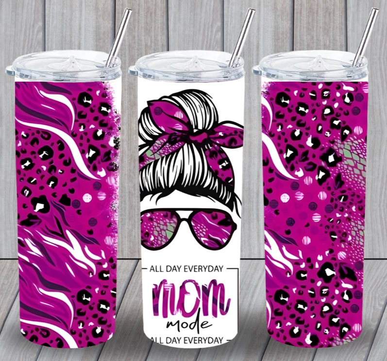 Mom Life 28 Mom Mode 20oz Insulated Tumbler With Box Lid Clear Straw New