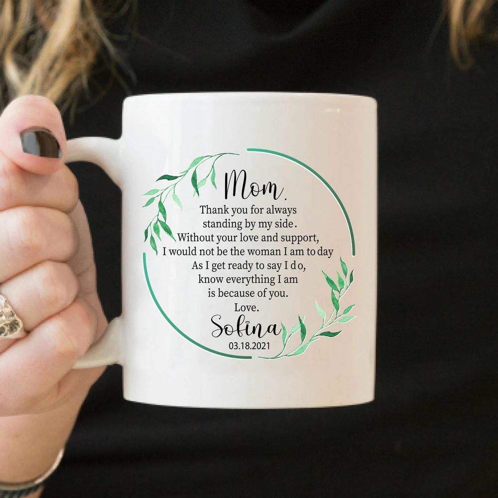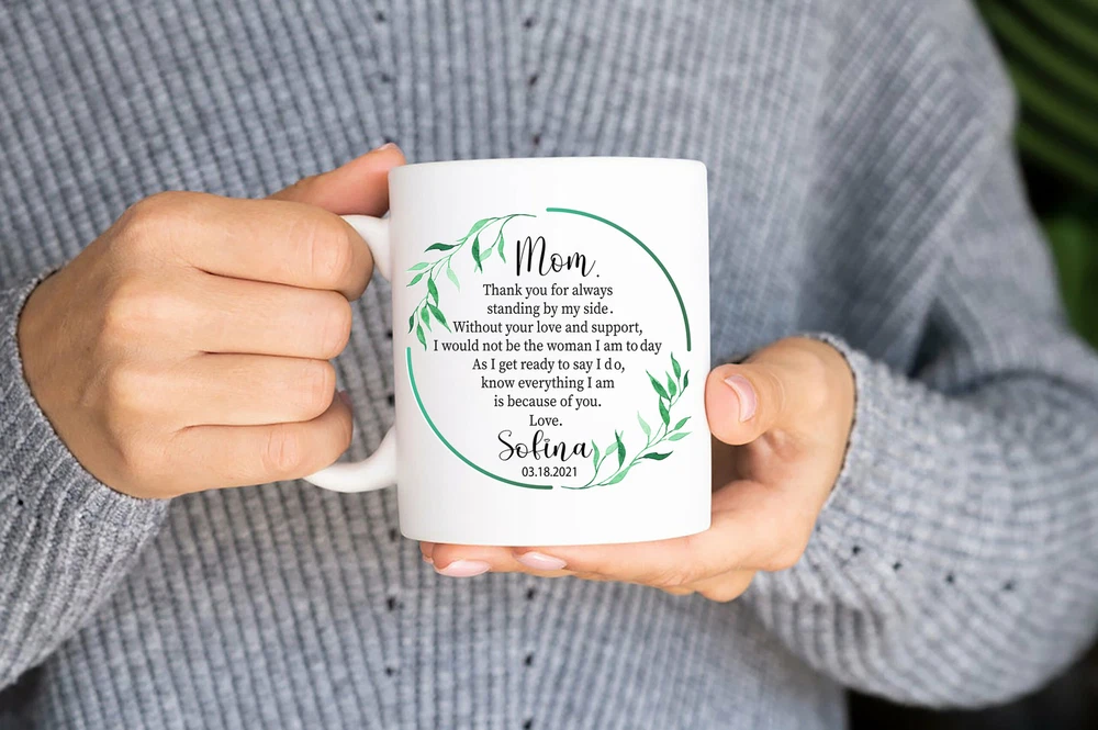 Mom Mug Mother's Day Mug Mother Of The Bride Mug Personalized Mother Of The Product Details.. This high quality 11oz. ceramic white mug has a premium hard coat that provides crisp and vibrant color reproduction sure to last for years. Perfect for all hot & cold beverages. The highest quality printing possible is used. It will never fade no matter how many times you wash it. Material: 100% Ceramic. Print both sides. Dishwasher and Microwave Safe. High Gloss + Premium White Finish. Printed in the U.S.A. Personalized & Custom. We support personalized and custom mug to add custom, when placing an order, you can add notes to the "order note" in shipping address section. Also you can contact us directly via message. Shipping Info. Ready to ship in 1 to 2 business days, All products are made-to-order and proudly printed in the United States. Shipped by USPS and DHL, You will receive your order in 5-7 days. Replace & Refund. All products are defective during shipping broken, chipped will be replaced free of charge. You are not satisfied with the product, we will refund 100% money to you. If any other issues arise, please do not hesitate to message, we would be more than happy to assist you.
