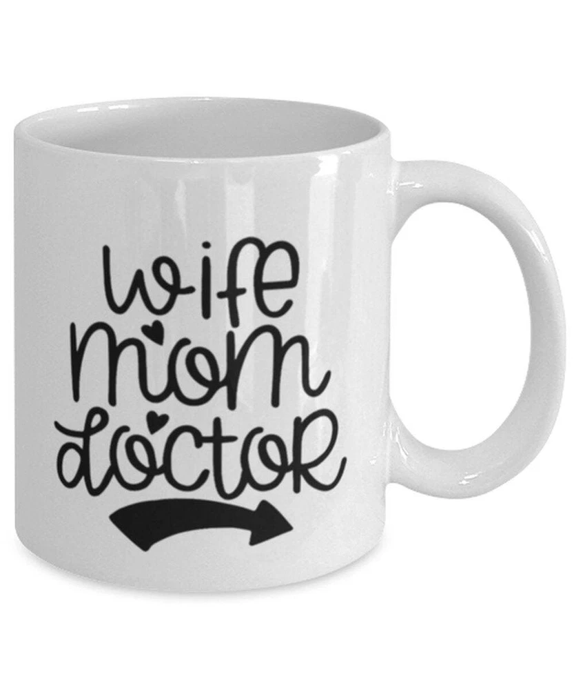 Mom Wife Doctor Graduation Coffee Mug Wife Mom Doctor Graduate Medical School Product Details.. This high quality 11oz. ceramic white mug has a premium hard coat that provides crisp and vibrant color reproduction sure to last for years. Perfect for all hot & cold beverages. The highest quality printing possible is used. It will never fade no matter how many times you wash it. Material: 100% Ceramic. Print both sides. Dishwasher and Microwave Safe. High Gloss + Premium White Finish. Printed in the U.S.A. Personalized & Custom. We support personalized and custom mug to add custom, when placing an order, you can add notes to the "order note" in shipping address section. Also you can contact us directly via message. Shipping Info. Ready to ship in 1 to 2 business days, All products are made-to-order and proudly printed in the United States. Shipped by USPS and DHL, You will receive your order in 5-7 days. Replace & Refund. All products are defective during shipping broken, chipped will be replaced free of charge. You are not satisfied with the product, we will refund 100% money to you. If any other issues arise, please do not hesitate to message, we would be more than happy to assist you.