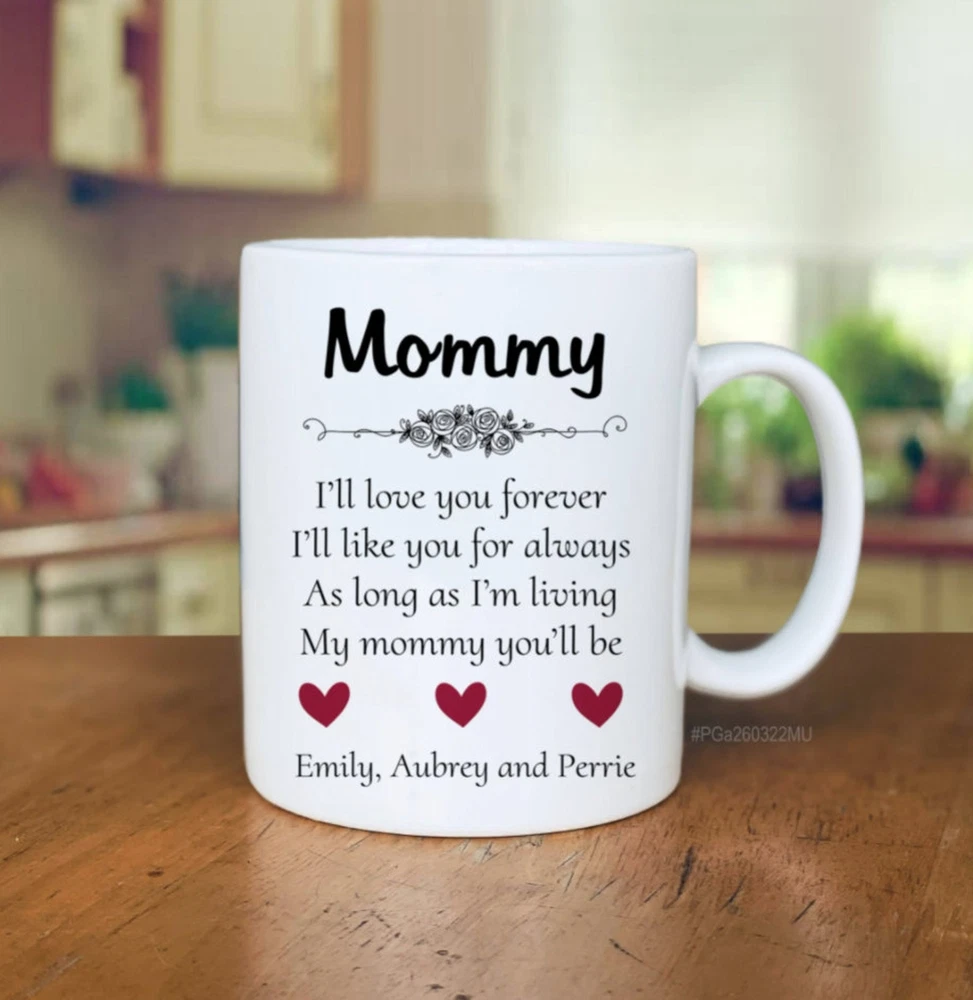 Mommy I'll Love You Forever Bonus Mom Mug Mother’s Day Gift Gift For Mom Custom Product Details.. This high quality 11oz. ceramic white mug has a premium hard coat that provides crisp and vibrant color reproduction sure to last for years. Perfect for all hot & cold beverages. The highest quality printing possible is used. It will never fade no matter how many times you wash it. Material: 100% Ceramic. Print both sides. Dishwasher and Microwave Safe. High Gloss + Premium White Finish. Printed in the U.S.A. Personalized & Custom. We support personalized and custom mug to add custom, when placing an order, you can add notes to the "order note" in shipping address section. Also you can contact us directly via message. Shipping Info. Ready to ship in 1 to 2 business days, All products are made-to-order and proudly printed in the United States. Shipped by USPS and DHL, You will receive your order in 5-7 days. Replace & Refund. All products are defective during shipping broken, chipped will be replaced free of charge. You are not satisfied with the product, we will refund 100% money to you. If any other issues arise, please do not hesitate to message, we would be more than happy to assist you.