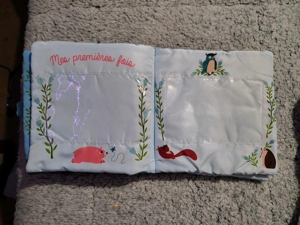 Capture your baby's milestones and precious moments with the Mon Premier baby book/album. This soft and plush French baby book is an ideal shower gift for new parents. It is perfect for keeping memories of your little one's first year in a safe and cozy place. The album is made of high-quality material that ensures durability and longevity. It features a unique design that makes it a great addition to any nursery. Whether you're looking for a place to store your baby's first photos or want to gift something special to a new mom and dad, this baby book is an excellent choice.