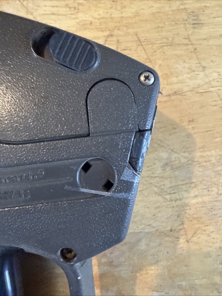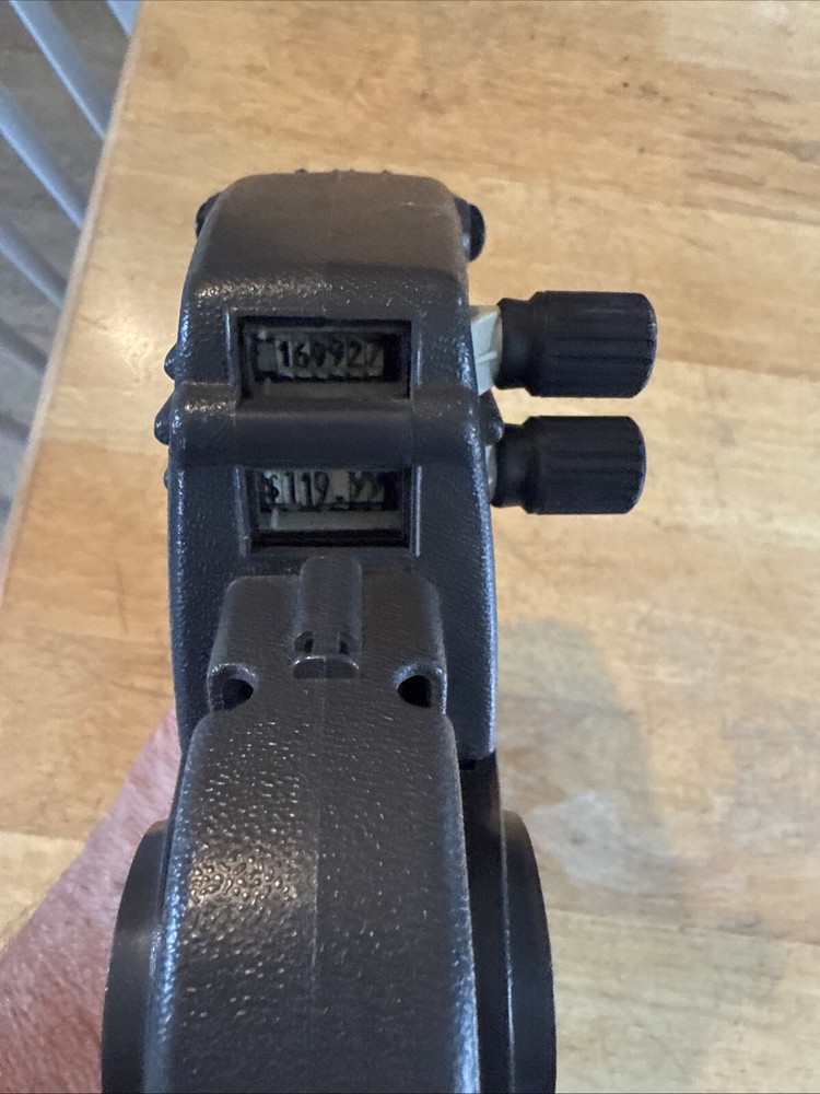 This Monarch Paxar label gun, model 1136, is a high-quality industrial labeling tool perfect for businesses and industrial settings. It is designed to provide precision and efficiency when labeling and tagging supplies, making it an essential item for any office or warehouse. With its durable construction and reliable performance, this label gun is sure to meet all your labeling needs. It is compatible with a wide range of labeling materials and is easy to use, making it a great choice for anyone who needs to label and tag supplies on a regular basis. So why wait? Order your Monarch Paxar label gun today and experience the power of precision labeling! Missing 1136 badge on side.