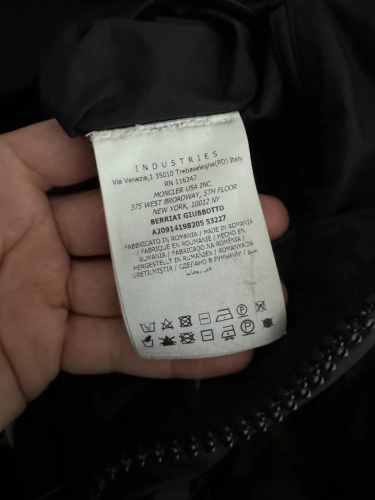 Moncler Berriat jacket Size 4 (L/XL) in black Used but good condition, just some small scratches below the badge (pic 3) and the cartoon missing (pic 7). 🌍 Free worldwide shipping 🎁 All items are shipped as LOW VALUE GIFTS πŸ’― 100% authenticity guaranteed πŸ“ All listings have pics with the measurements, compare them to a similar item you own to know exactly if/how it fits! (Usual) delivery times: β€’ Europe/UK - 2/5 days β€’ USA/Rest of World - 5/9 days