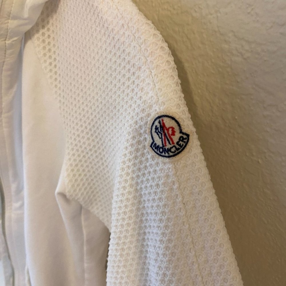 This Moncler children's white zip-up jacket, size 12, boasts a stylish design suitable for various occasions. Known for its premium quality, Moncler is a renowned luxury brand originating from France. This brand has a rich history in producing high-end outerwear and is celebrated for its iconic down jackets. Keywords: Moncler, luxury, children's, white, hooded, zip-up, jacket, size 12, authenticated, premium, brand, France, outerwear, down jackets. This product is in excellent used condition with no rips, tears, or stains. Care details can be found in the picture.