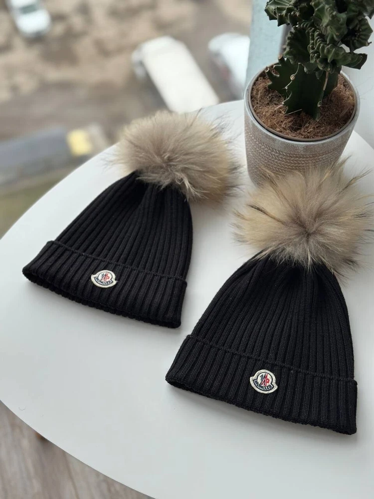 Moncler Ladies Hat in size Small, made of real fur with a beanie style. Designed for occasions like travel, weddings, parties, casual or formal events, workwear, or business settings. The black hat features a stretch fit for comfort and is suitable for the winter, fall, or spring seasons. It carries a thematic influence of army, art, and Italian design, made in Italy by the Moncler brand. Perfect for women seeking stylish and warm headwear.