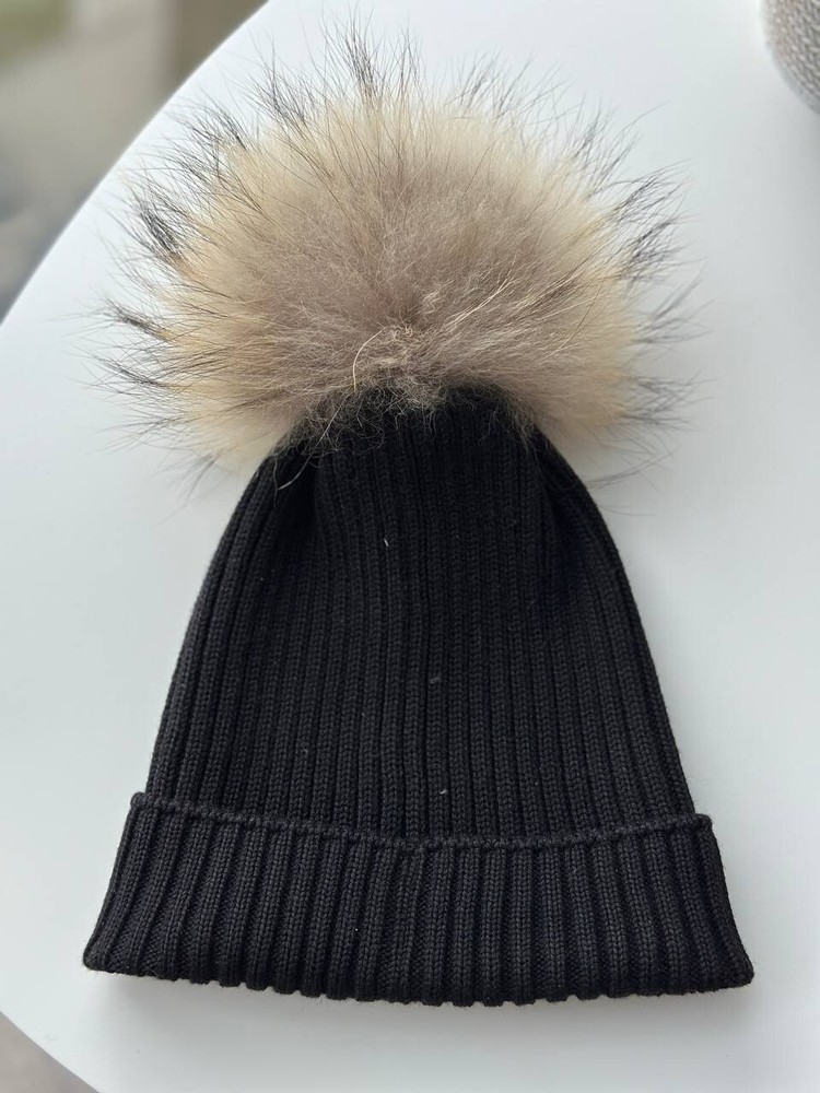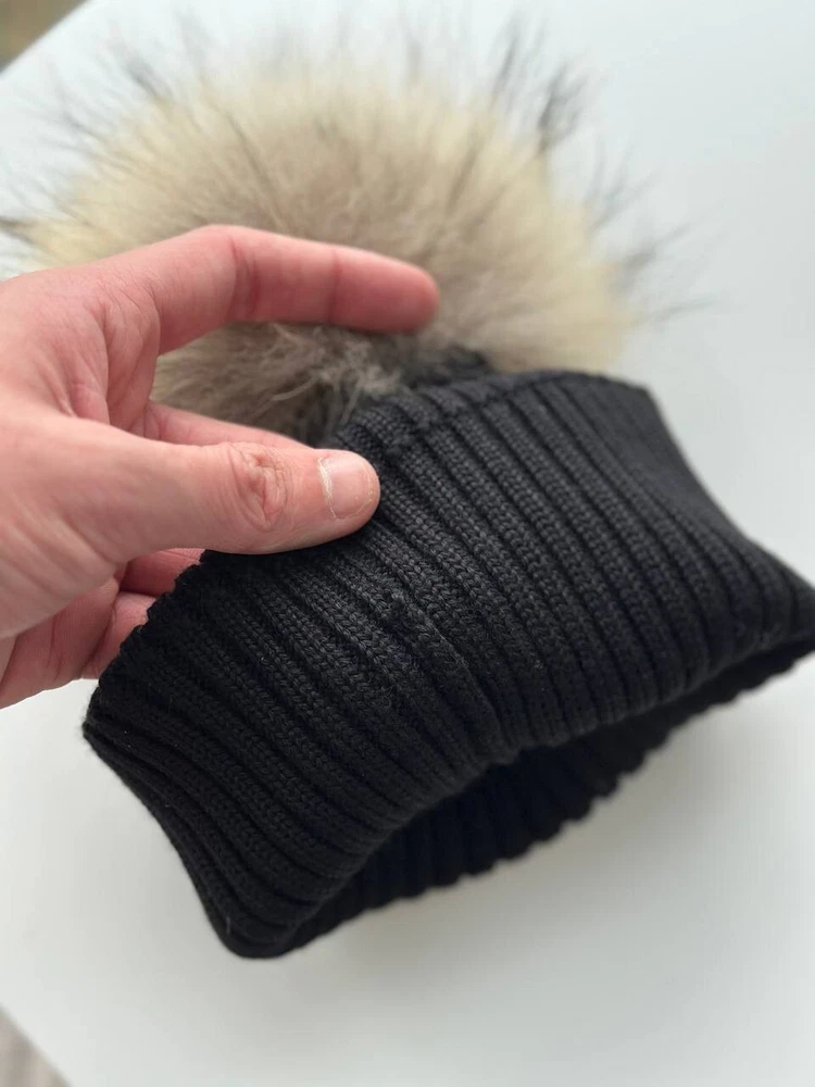Moncler Womens Black Real Fur Hat Rare Vintage Style