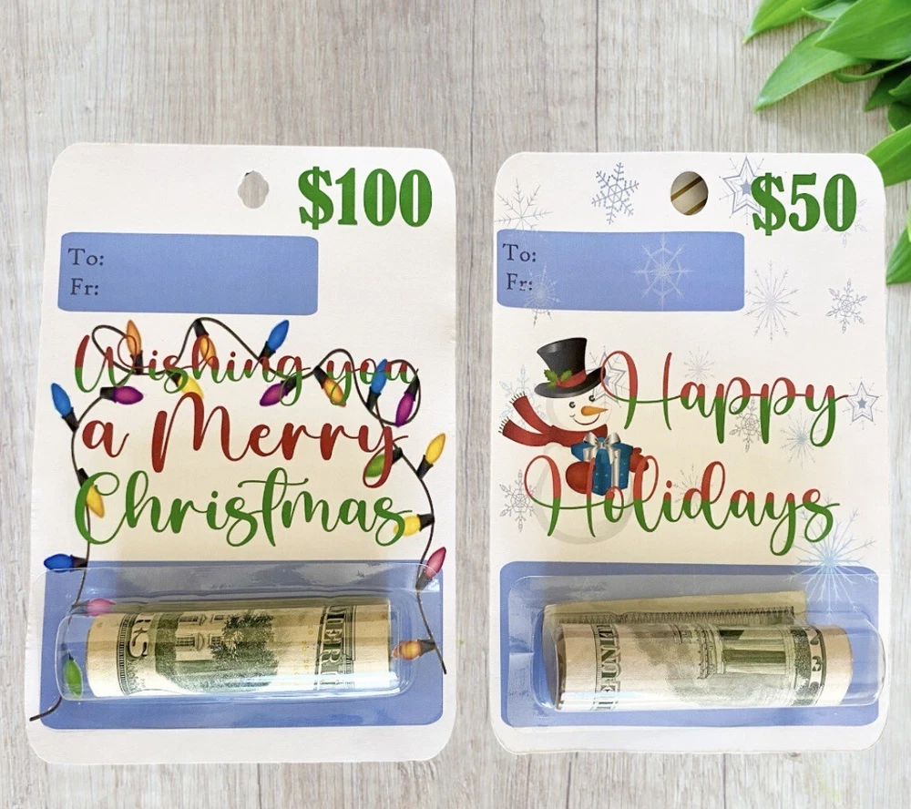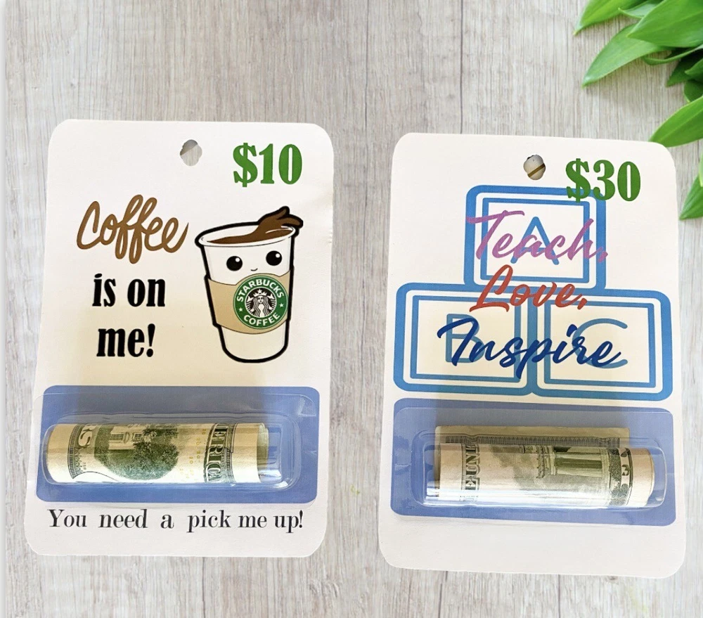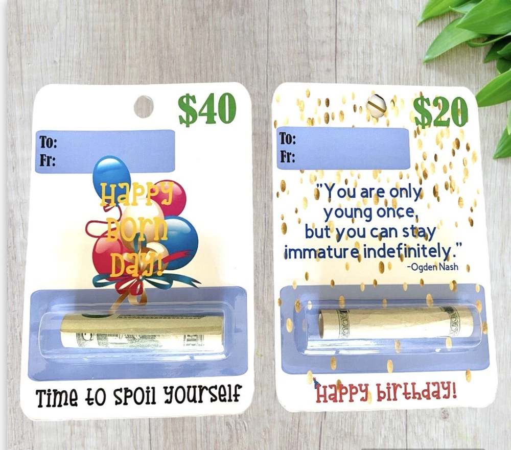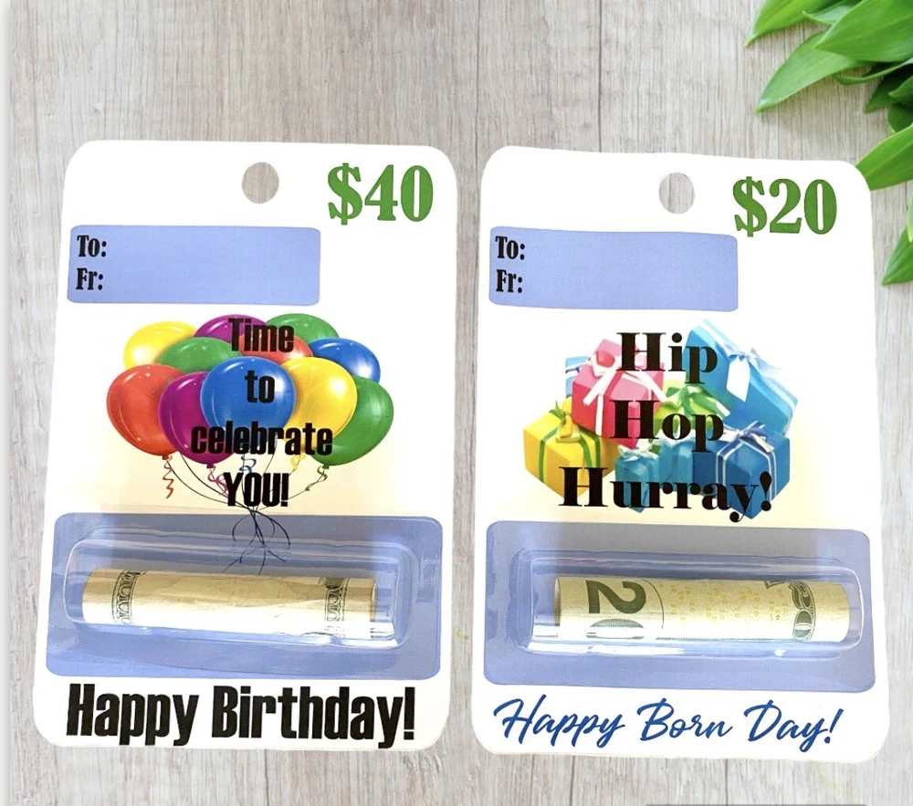 Are you the type of person that carries cash but don’t have the time to purchase a gift card at the store? I have a solution! I’ve made these money cards where you can adhere cash. If you would like a different dollar amount, let me know. Want it customized, let me know what occasion and I can create one for you. ✨Price is for each card. Buy 4, get 1 free (5 total) ✨Made to order ✨Made of premium card stock ✨Measures 6x4 ✨Please indicate which ones you would like