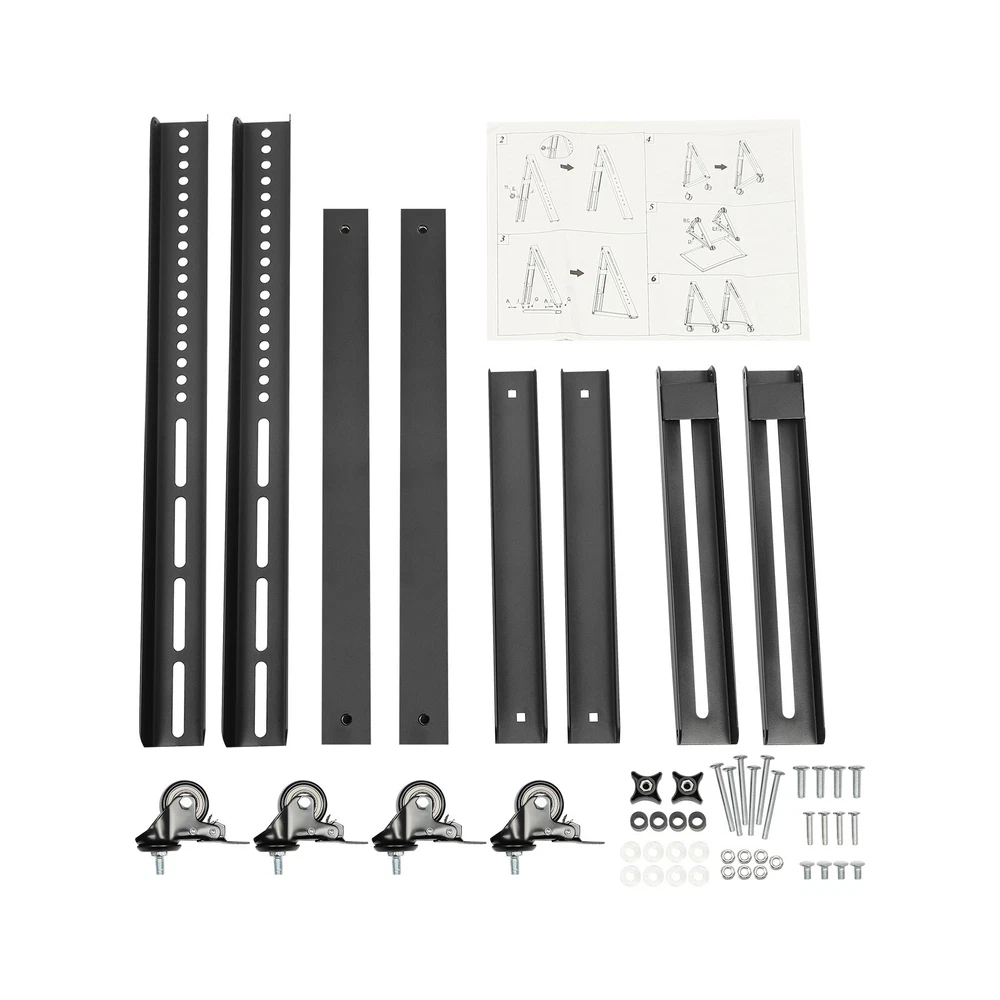 Monitor Floor Stand Cart Rolling TV Mount+ Wheel Low Height Mobile TV Stand Description Low Height Mobile TV Stand, Monitor Floor Stand Cart, Rolling TV Mount with Wheel for 32-80" Flat Curved Screen TV, LED LCD, 30°-75° Adjustable Viewing Angle Description A mobile TV stand is a very practical, convenient, and flexible stand that can meet the needs of different occasions while keeping an ingenious balance between space and screen viewing by artistic means. Our TV stand Highlights adjustable tilt angles and heights, strong load capacity, separable use design, and four universal wheels, providing you with an excellent tool so that you can enjoy entertainment at home or improve work efficiency in the office. Key Highlights Adjustable Tilt Angle: You can manually adjust the tilt angle from 30°-75° and fix it with the knob to reduce irritating glare, neck pain, and eye fatigue while providing you with optical perspective. High-quality Material: Made of premium cold-rolled steel with electrostatic spraying technology, this TV stand is hard, rustproof, wear-resistant, and not easy to deform. Strong Load-bearing Capacity: Because of the triangle structure, integrated molding process, firm connection through screws, and double-bar design, this stand has a load capacity of 55 lbs and is very solid. Highly Mobile: Four universal rubber wheels(all have brakes) allow for smooth and silent movement without scratching the floor and safe fixation for stable support of your equipment. It is very suitable for businesses and public sectors that want to bring monitors to different locations without having to purchase multiple monitors. Separable Design: This product can be separated into a separable triangular stand cart for floor use(32-55" TVs) and a rectangular wall-mounted bracket for hanging use(32-80" TVs), making it more flexible to meet your different needs. Modern and Graceful: The triangular frame with timeless black color and smooth lines makes this product simple, modern, and generous, which is a stylish complement to your TV. Powerful and Practical: It can be used in business environments to showcase company performance, upcoming events, and other important information to employees and customers. By opening up desk space, you can work in a more comfortable environment, achieving double efficiency and productivity. Simple Installation : With complete accessories, a simple structure, and a clear installation diagram, you can assemble this TV stand easily. Convenient to Carry&Store: Because of the simple parts and separable structure, this TV stand can be convenient to carry and store after disassembly. Effortless Cleaning: The smooth surface with an electrostatic spraying treatment allows you to simply wipe off the dust with a damp rag. Customer Service: We aim to provide quality products and services. If you have any problems, please feel free to contact us. We will reply and solve the problem for you as soon as possible. Details 15.55-22.44" Low Height: The adjustable low height of 15.55-22.44 inches can meet your special viewing needs and ensure stability and safety when moving the stand. Pre-drilled Holes: The holes on the stand ensure easy installation, convenient adjustment, and wider application. Round Edge: Compared with traditional square corners, an arc design can better care for your skin. Application This product applies to various TV/monitors within 32-80". It can be used in stages, conference rooms, rostra, theaters, cinemas, KTVs, press conferences, yoga rooms, gyms, shopping malls, churches, exhibition halls, lobbies, trade exhibitions, museums, schools, science and technology museums, and other places, and is suitable for financial communications, hotel catering, medical industry, enterprises, and other fields. Specifications Color: Black Style: Modern Shape: Triangular Assembly Required: Yes Mounting Type: Floor Standing Movement Type: Rotate Material: Cold Rolling Steel, Rubber Processes: Integrated Molding, Electrostatic Spraying Compatible Devices: Monitors, Televisions Adjustable Tilt Angle: 30°-75° Base Width: 44cm/17.32inch Vertical Height: 39.5-57cm/15.55-22.44inch Adjustable Side Length: 30-56cm/11.81-22.04inch TV Rack Size: 64*21.4*43cm/25.19*8.42*16.92inch Rolling Triangular Stand(TC610 Model): Load-bearing Capacity: 25kg/55 lbs Applicable Spacing(L*H): <50cm/19.68inch(Horizontal and Vertical) Compatible TV Size: 81-140cm/32-55inch, Universal Package Size: 56*18.5*4.5cm/22.04*7.28*1.77inch Net Weight: 5kg/11.02 lbs Gross Weight: 5.4kg/11.9 lbs Rectangular Bracket(GD03 Model): Load-bearing Capacity: 75kg/165.34 lbs Applicable Spacing(L*H): 60*40cm/23.6*15.75inch Compatible TV Size: 81-203cm/32-80inch, Universal Package Size: 48.5*19.5*2.5cm/19.09*7.67*0.98inch Gross Weight: 1.3kg/2.86 lbs Package Included 1* Mobile TV Stand 1* Installation Diagram All Accessories for Assembly Notes Please check the color and size before purchasing. We send the mobile TV stand separately, please wait patiently for all parts to arrive. The package excludes items other than the TV stand shown in the product photos. Please assemble this product according to the installation diagram and wear gloves when installing it to protect your hands. Please allow the slight color difference caused by the shooting light and 1-3cm error due to manual measurement, and make sure you do not mind before you order. Payment Delivery details Terms of sales About us Contact us Payment We accept ebay payment 。 Fees such as import duties, taxes are not included in the item price or shipping costs. These charges are the buyer's responsibility. Delivery details Shipping: 2-9 working days to: USA Terms of sales We maintain high standards of excellence and strive for hundred percent customer satisfaction. Feedback is very important to us. We hope that you contact us immediately before you give neutral or negative feedback, so that we can address your concerns. It is impossible to address issues if we do not k