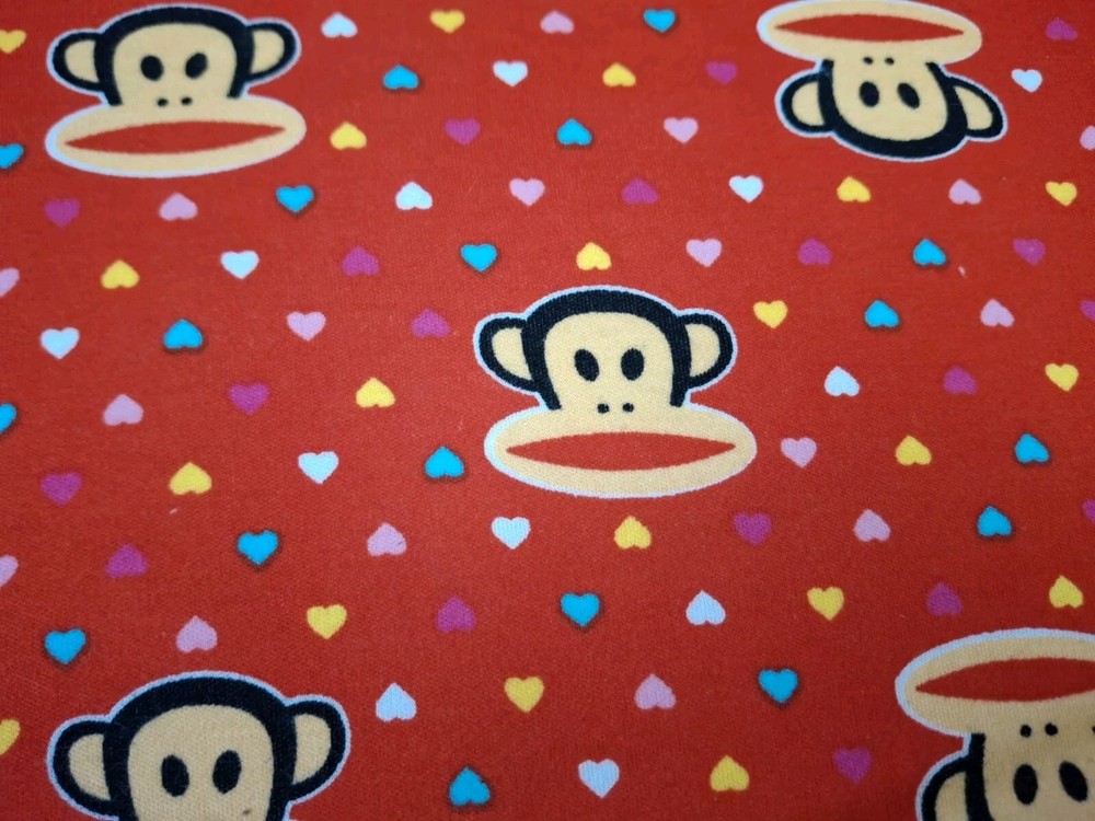 Cotton Jersey Stretch Retro Red Monkey Fabric Paul Frank Material Approximately 65in X 58in Please view all photos zooming in on them as they are part of the description for you to judge condition.