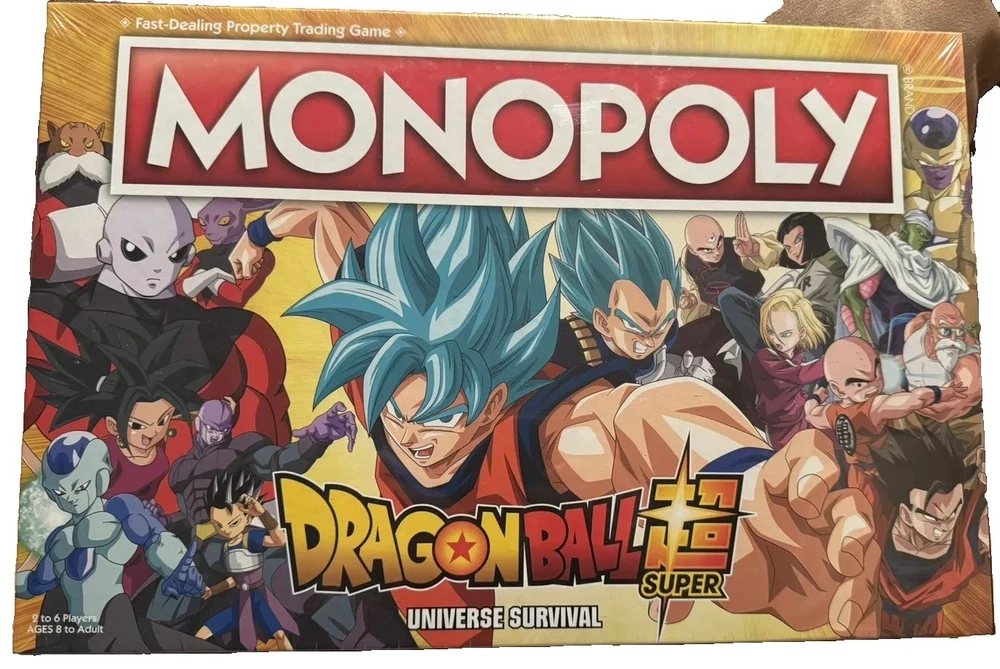 Monopoly Dragon Ball Super Universe Survival Edition is a board game featuring Dragon Ball Z characters. Designed for 2 or more players, it offers a unique twist on the classic Monopoly game with a Dragon Ball Z theme. Released in 2020 by Hasbro, this game is suitable for ages 8 to adult and is based on the Dragon Ball Z series. The game is unopened and sealed.